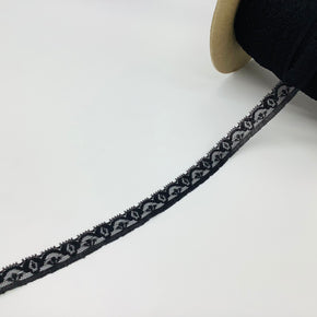 Black 5/8" Ornamental Lace Trim with A Pico Scallop - 15 Yards