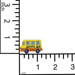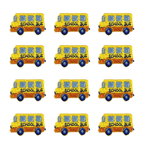 School Bus Embroidered Applique – 1-1/4" x 3/4" – Iron-On, Press-On or Stick-On – Pack of 12
