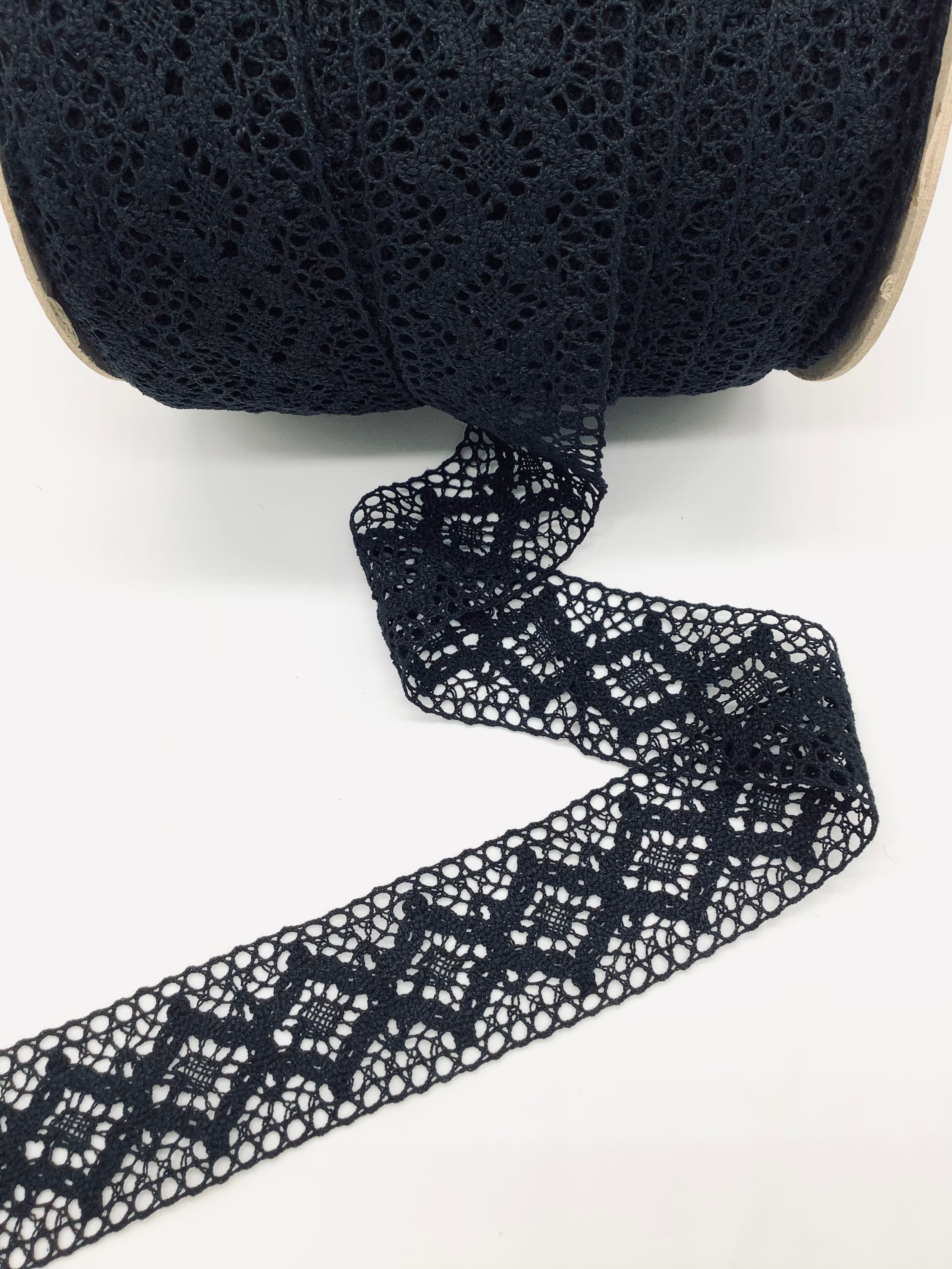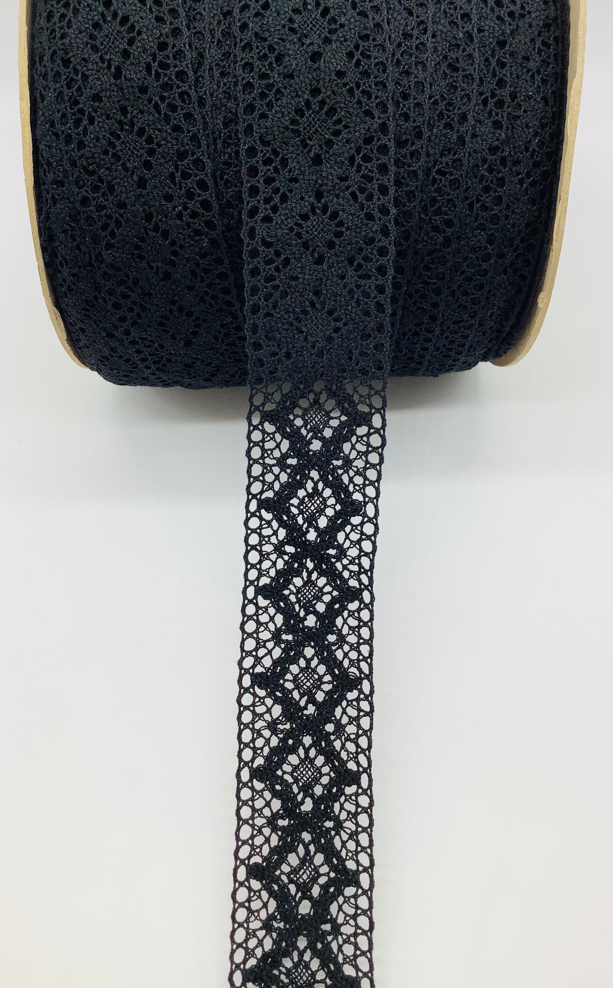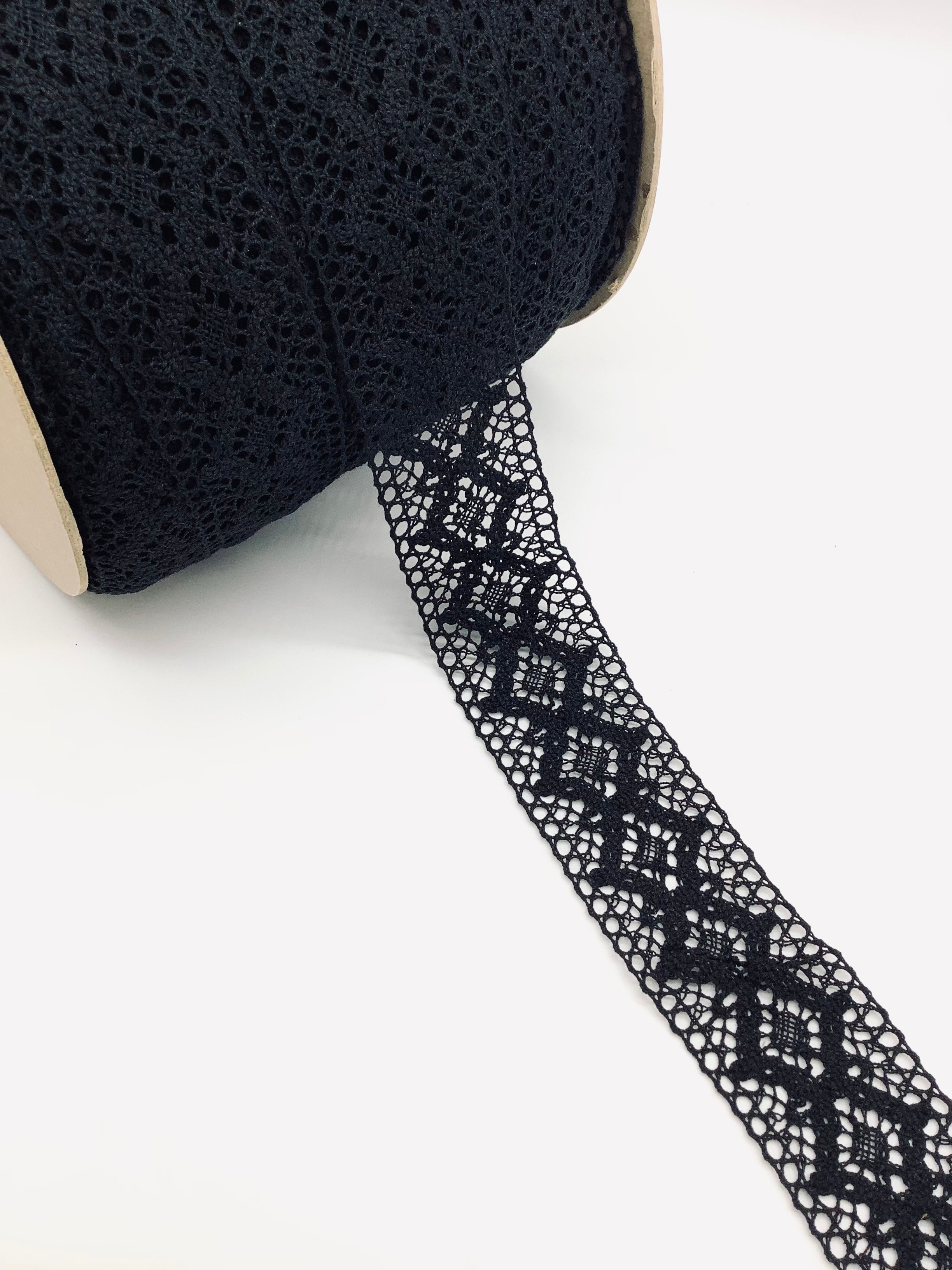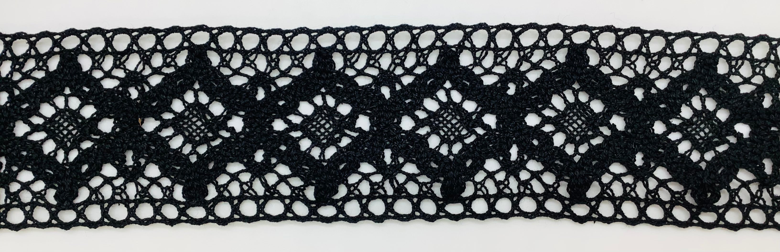 Black 2" 100% Cotton Cluny Lace Insert - 10 Yards