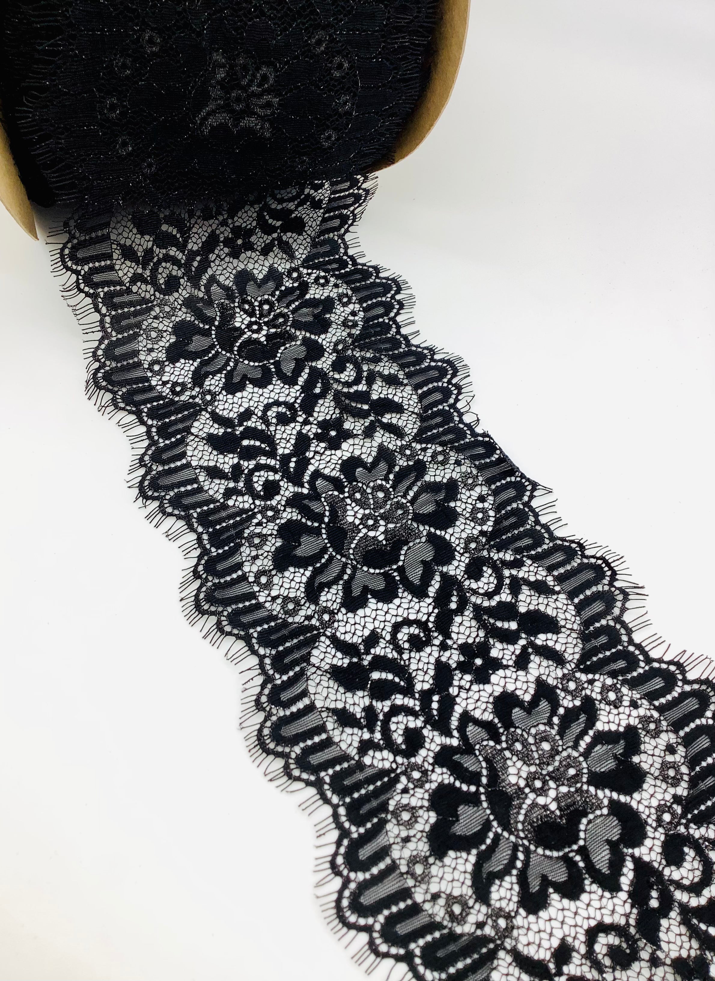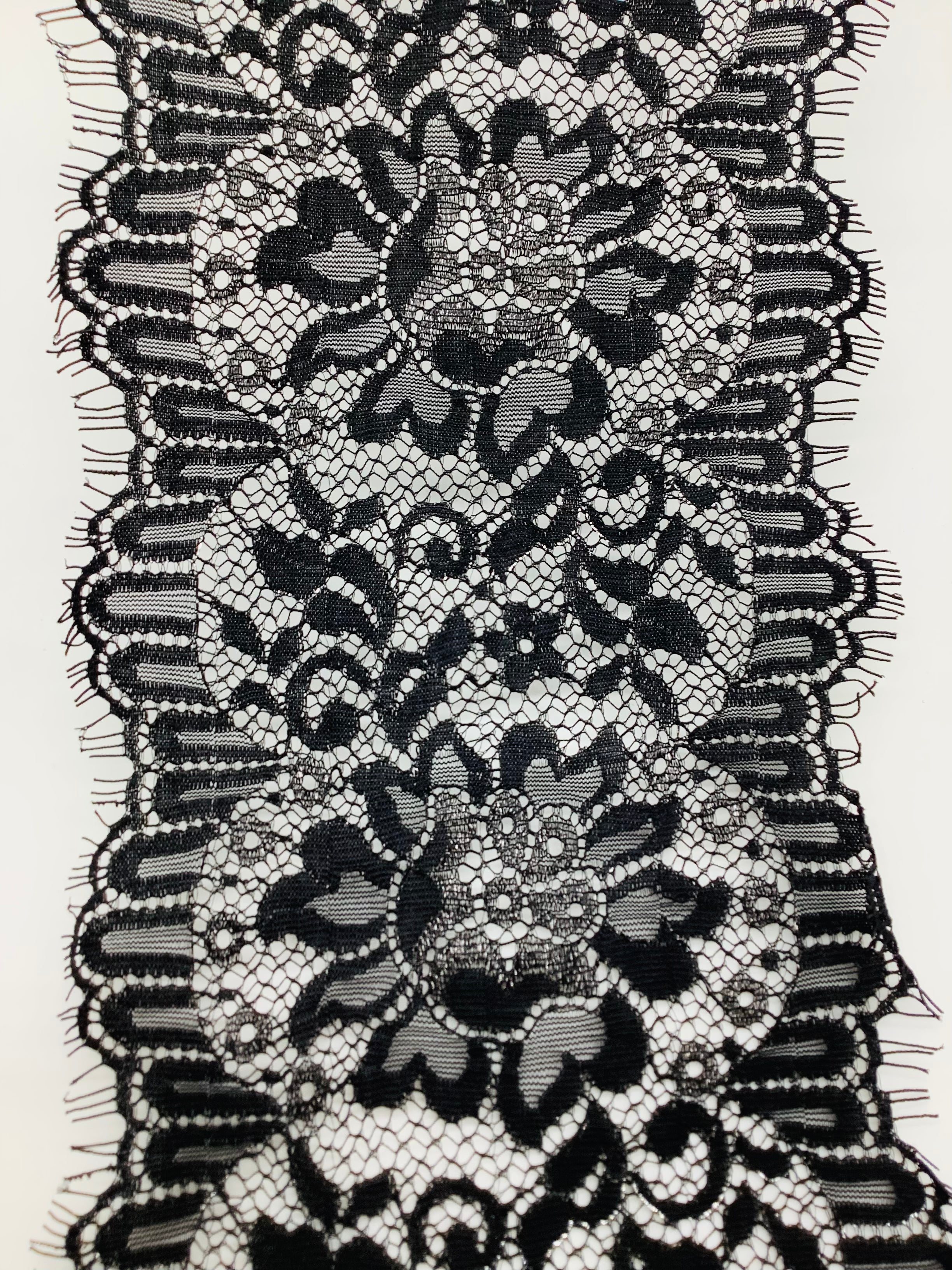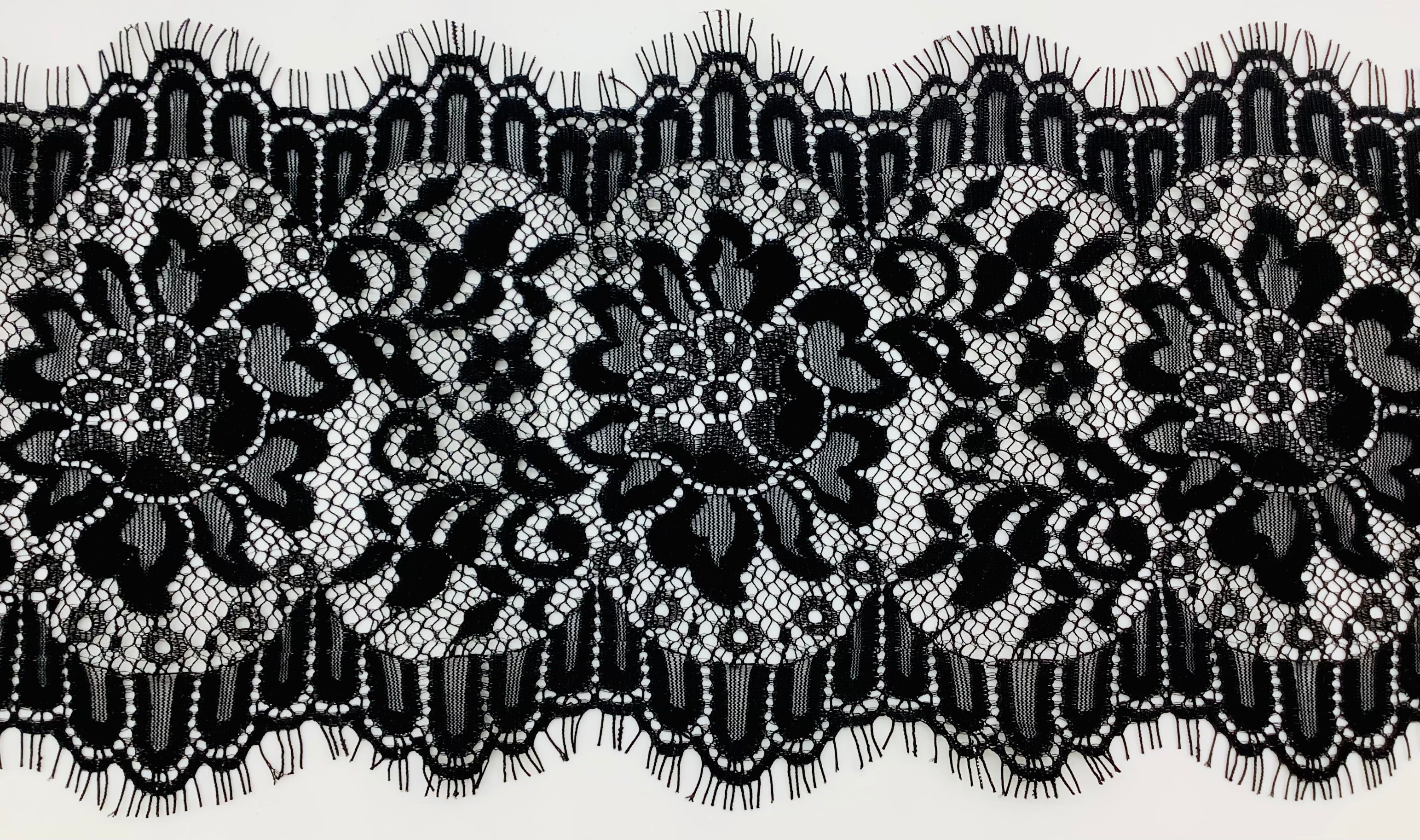 Black 5-1/2" Leavers Lace Galloon with Eyelash Edges - 3 Yards