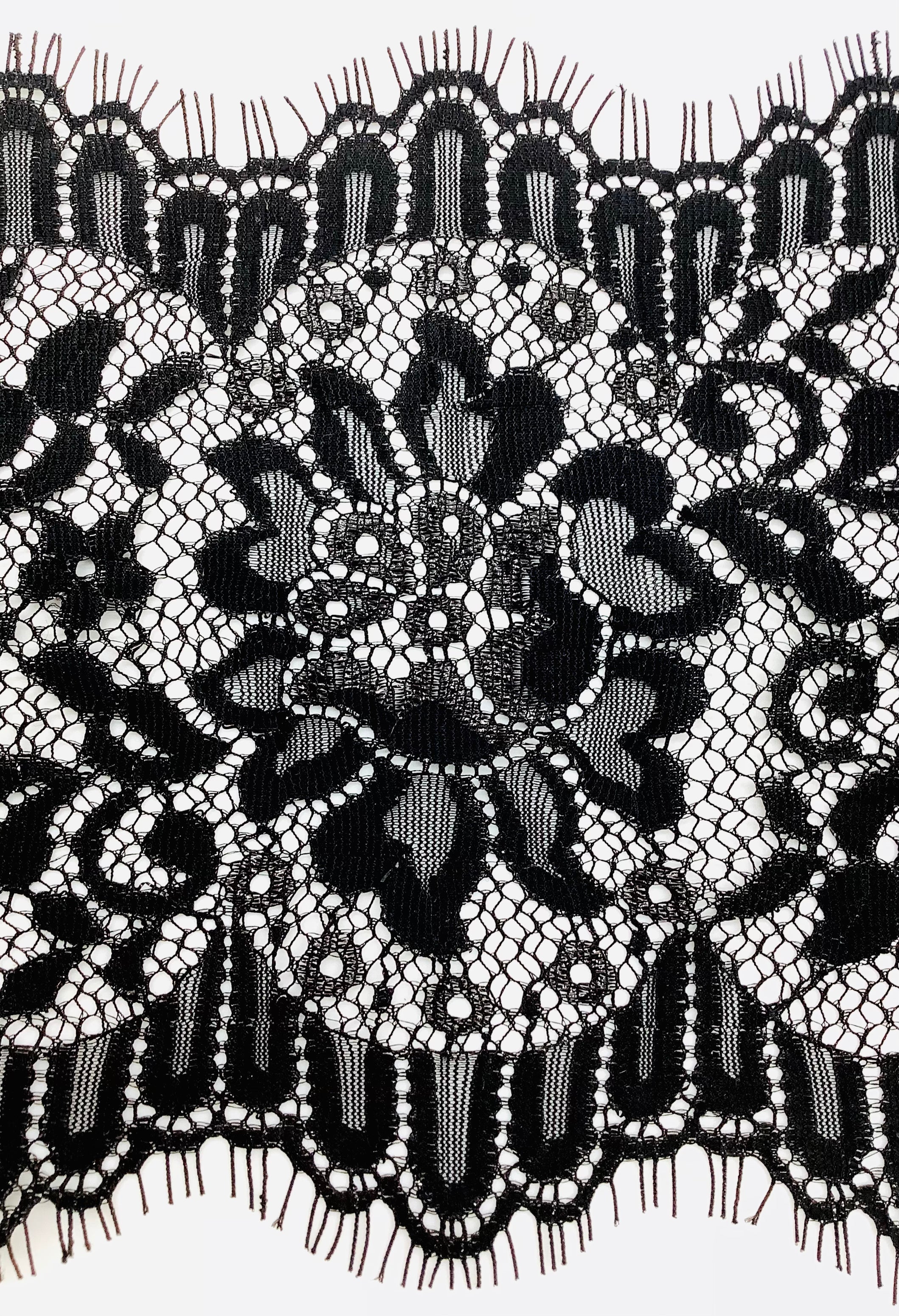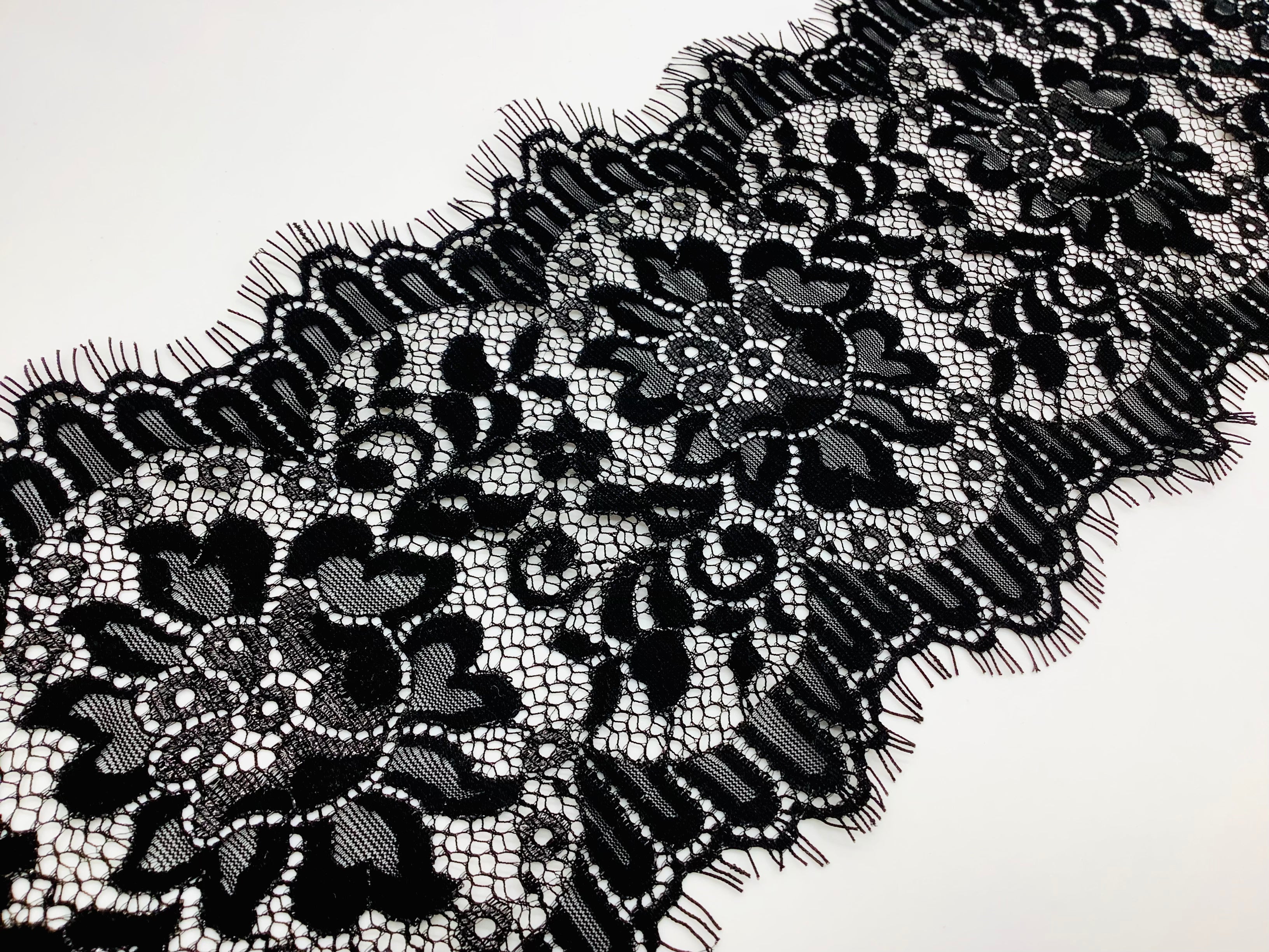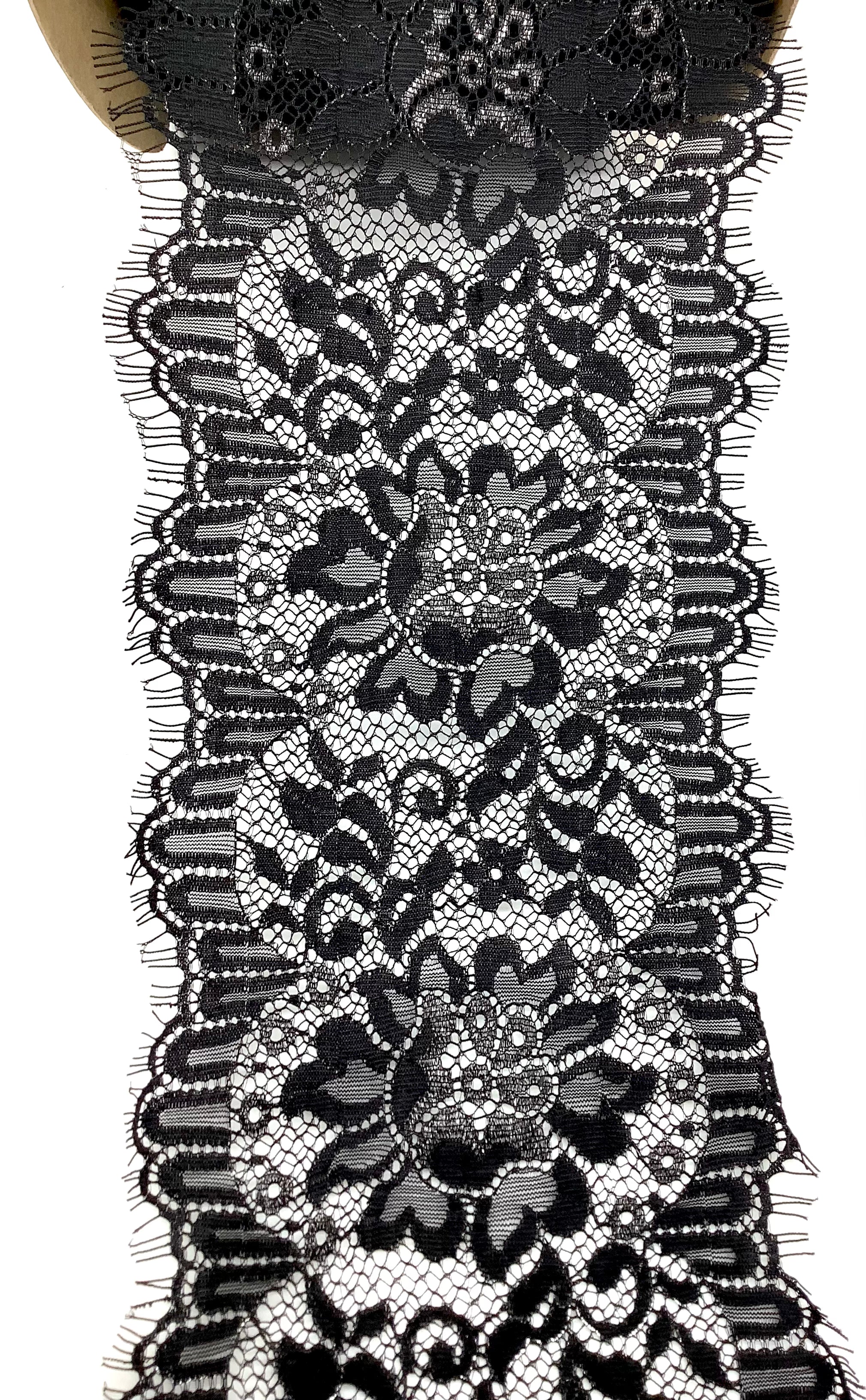 Black 5-1/2" Leavers Lace Galloon with Eyelash Edges - 3 Yards