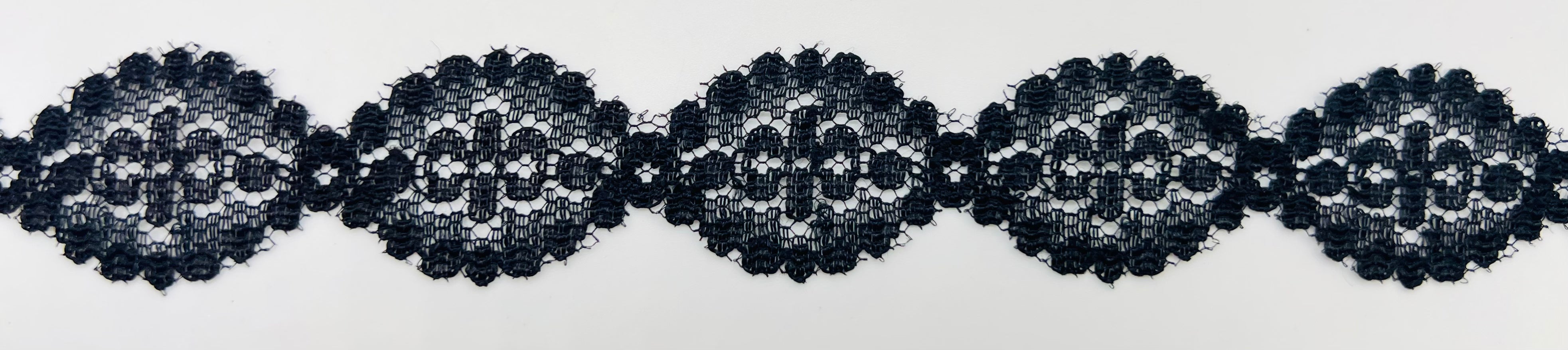 Style #: KB2825-1Price Per Spool: $18.97Package Contains 8 Yards Floral Lace GalloonThe Flowers are bold & outlined with a denser Cord 100% Polyester Great for Bridal, Costumes & Millinery