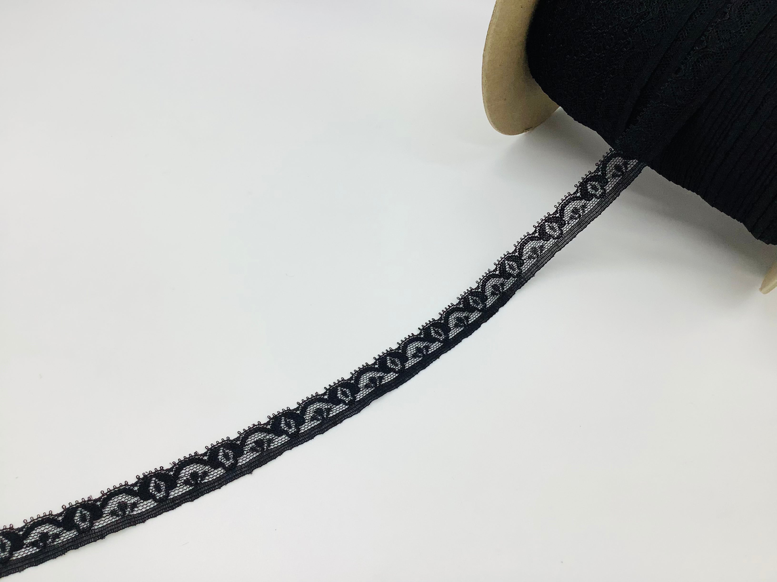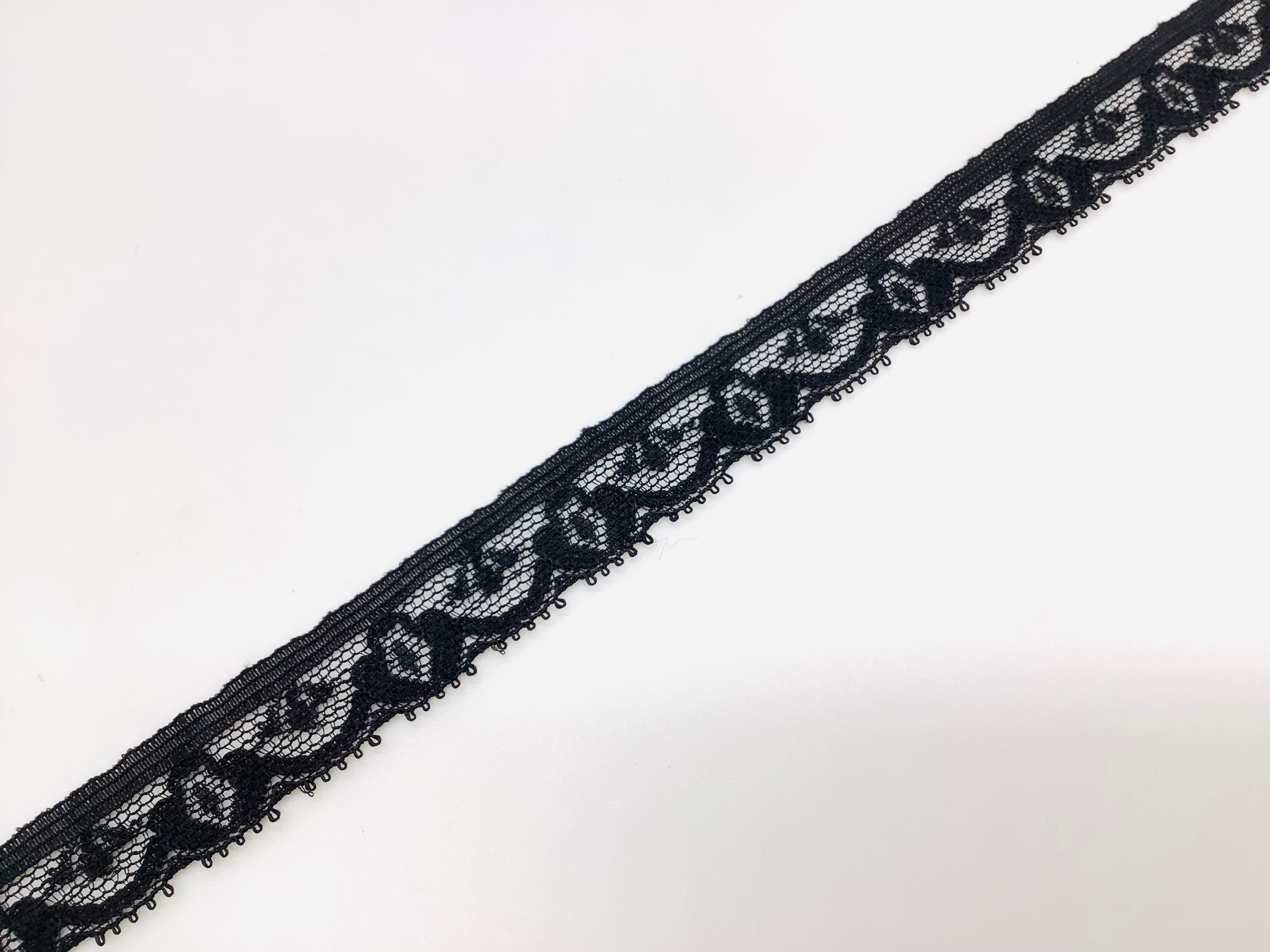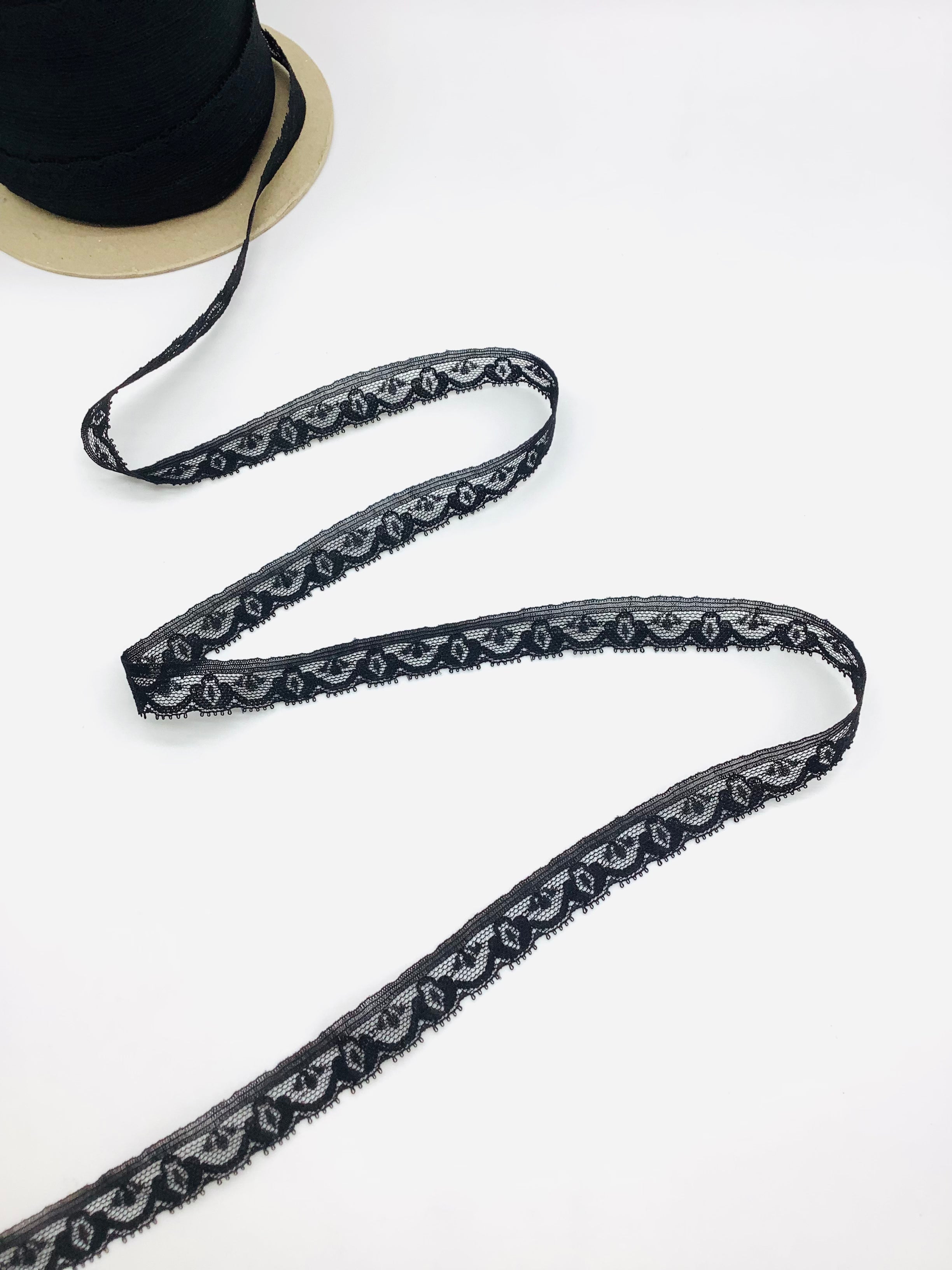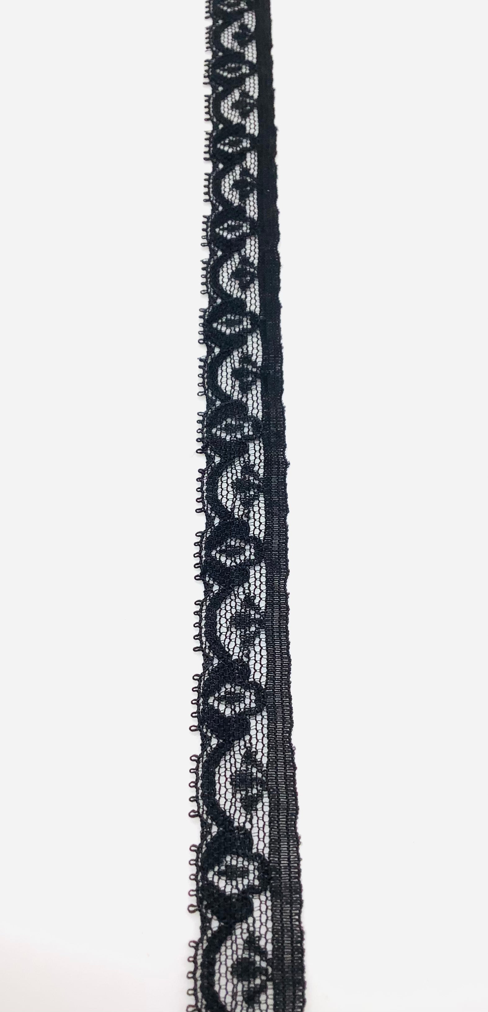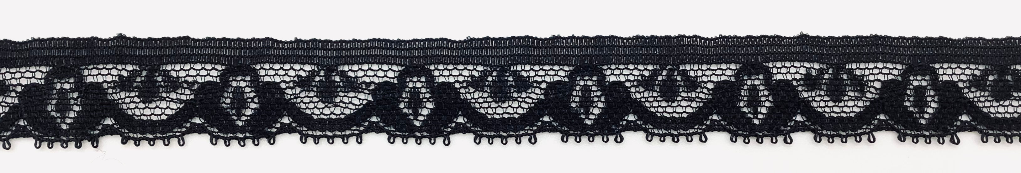 Black 5/8" Ornamental Lace Trim with A Pico Scallop - 15 Yards