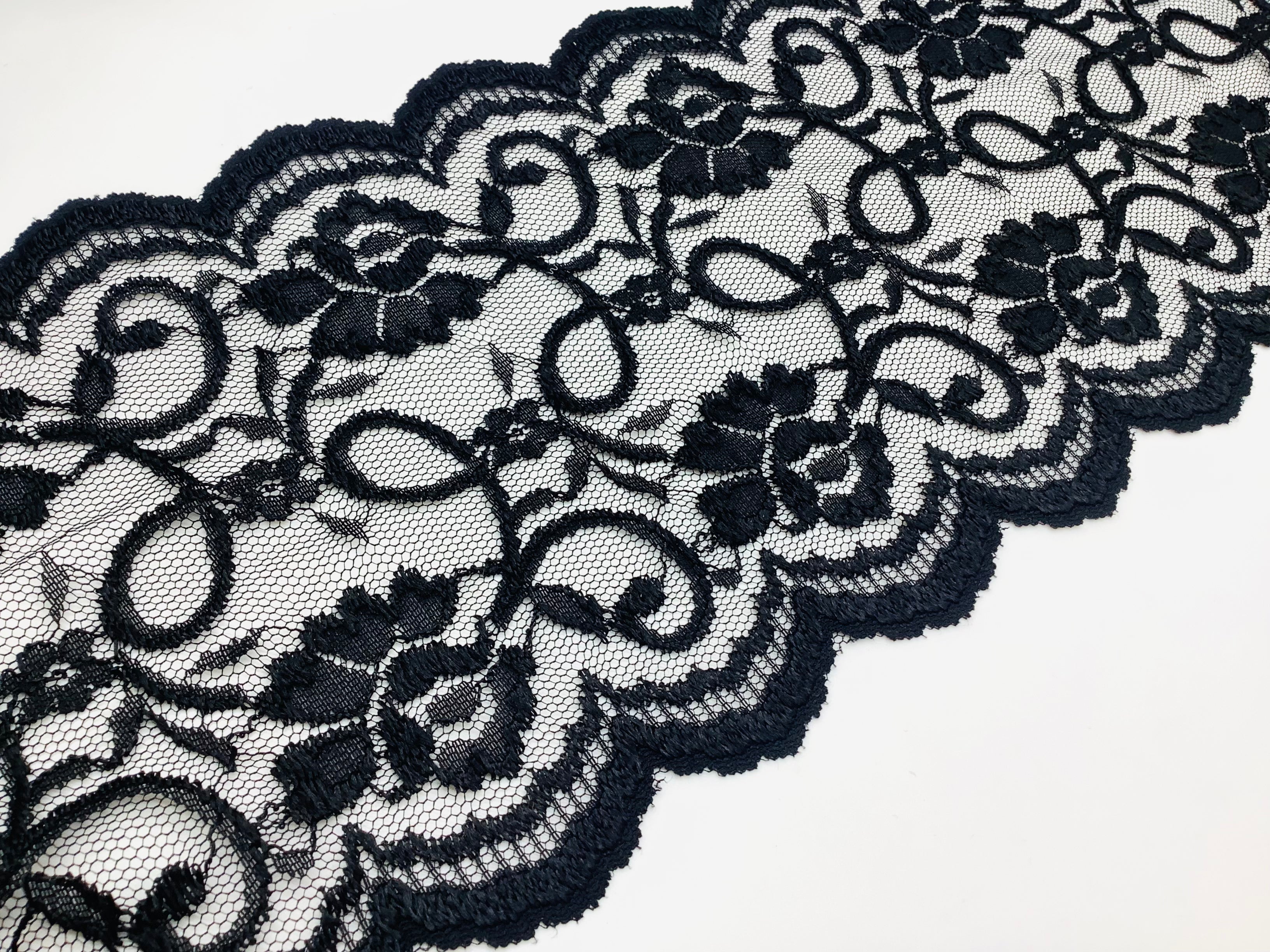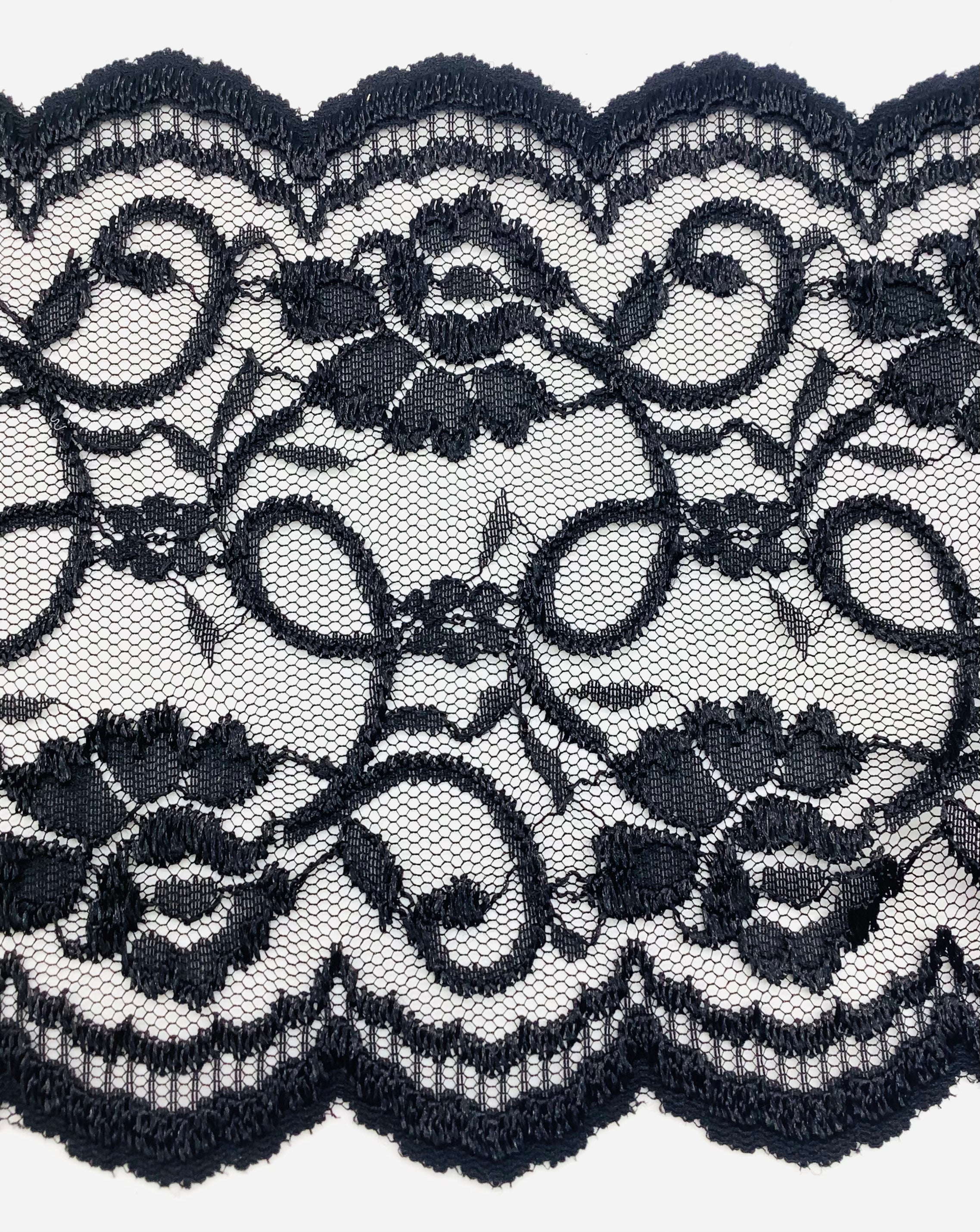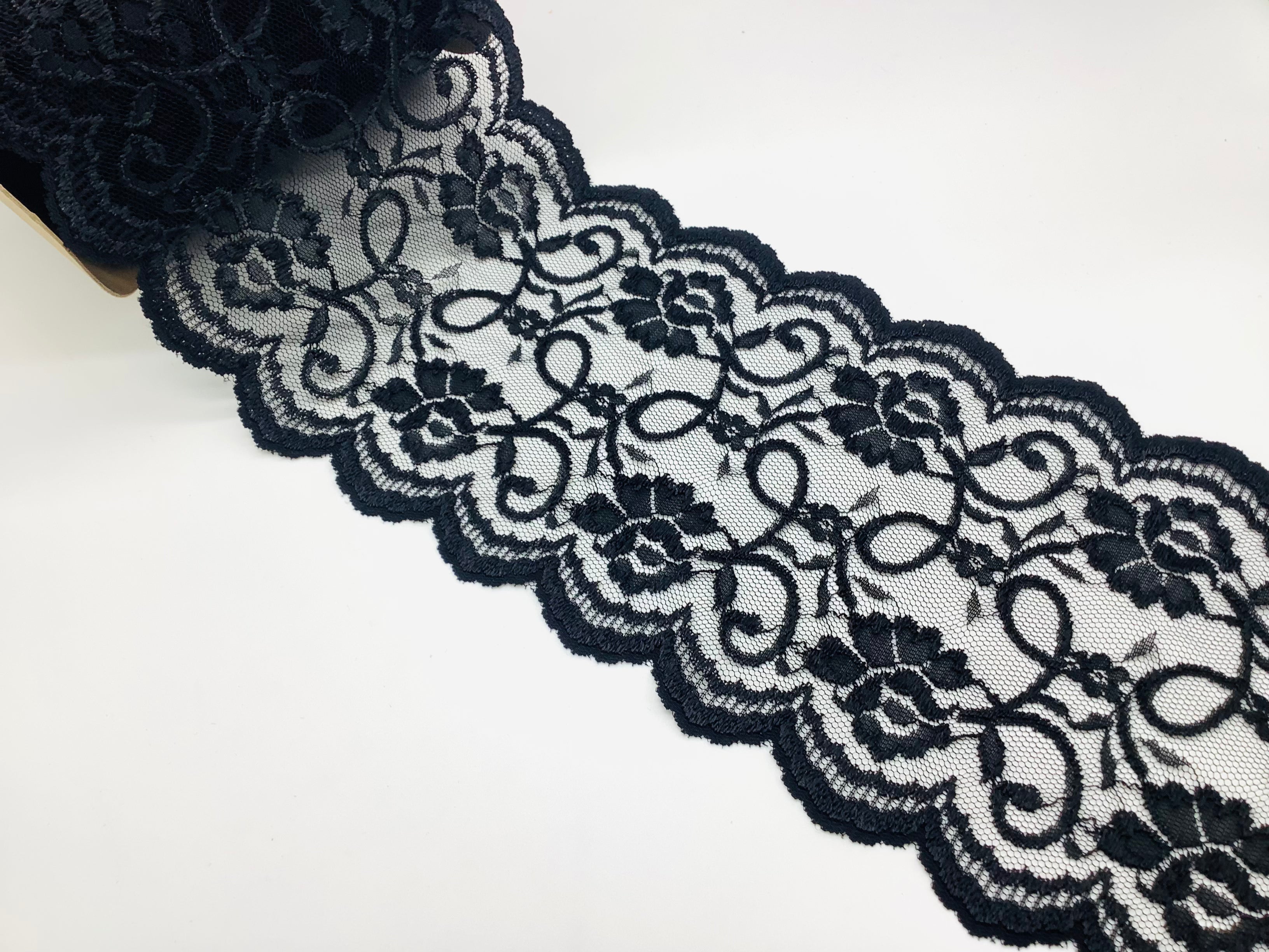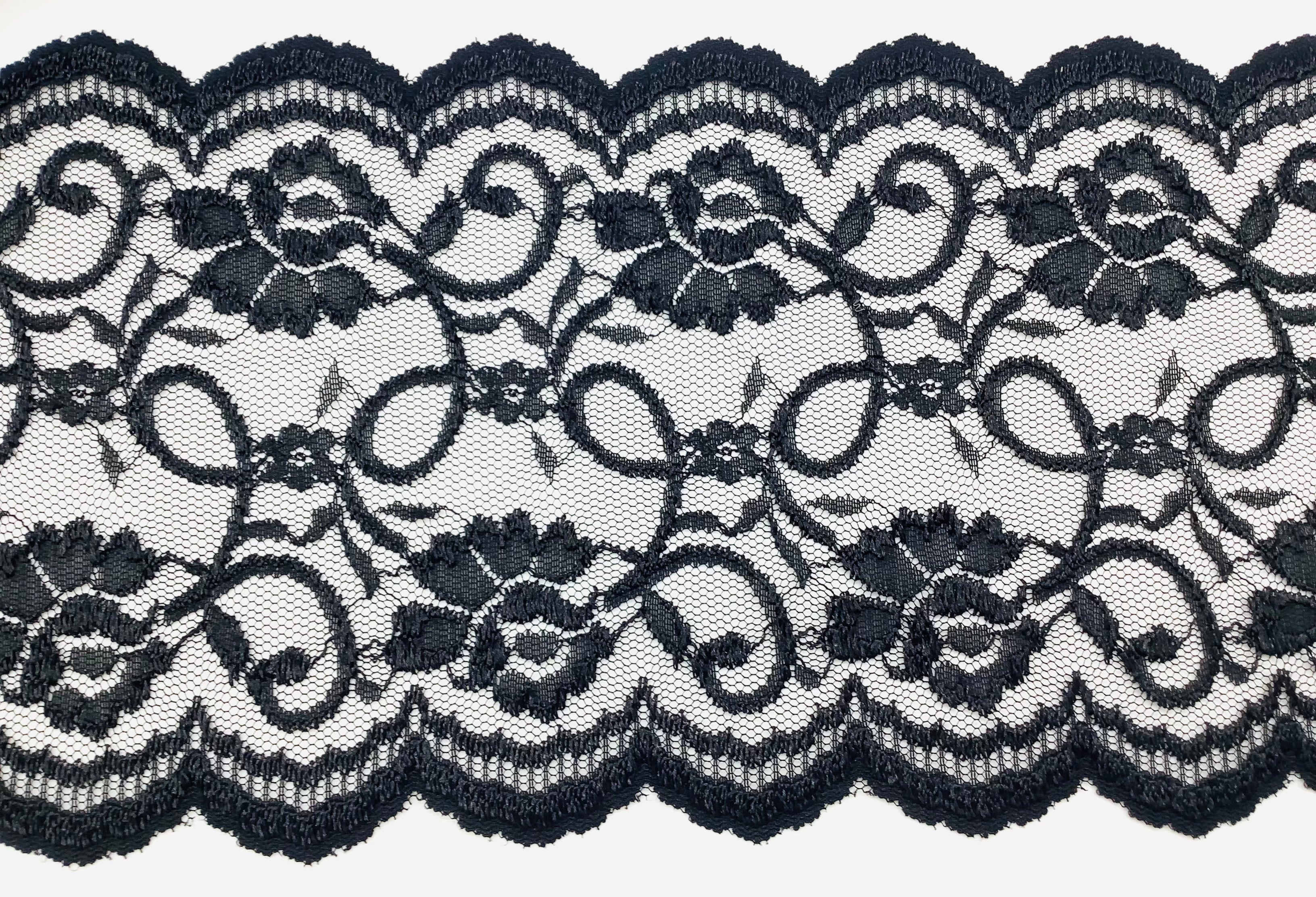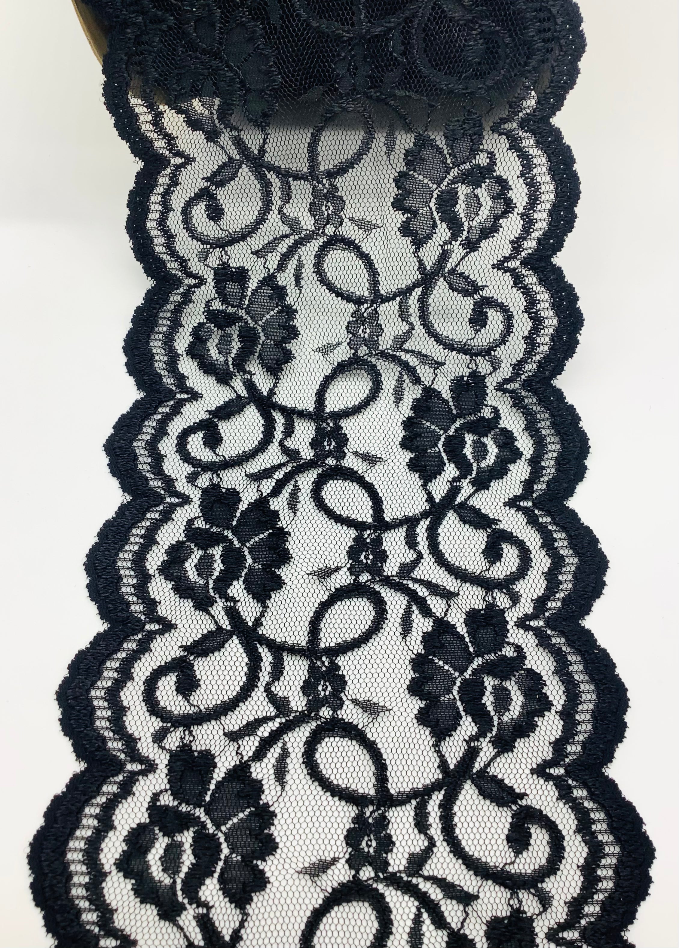Black 5/8" Ornamental Lace Trim with A Pico Scallop - 15 Yards