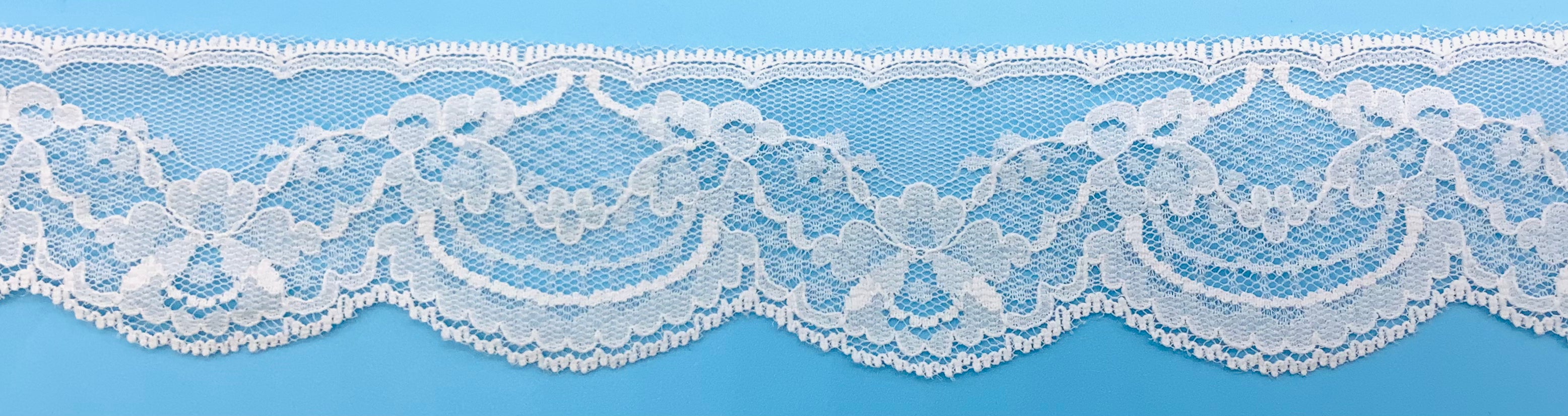 White 1-1/2" Lace Edge with Flowers & Leaves - 12 Yards