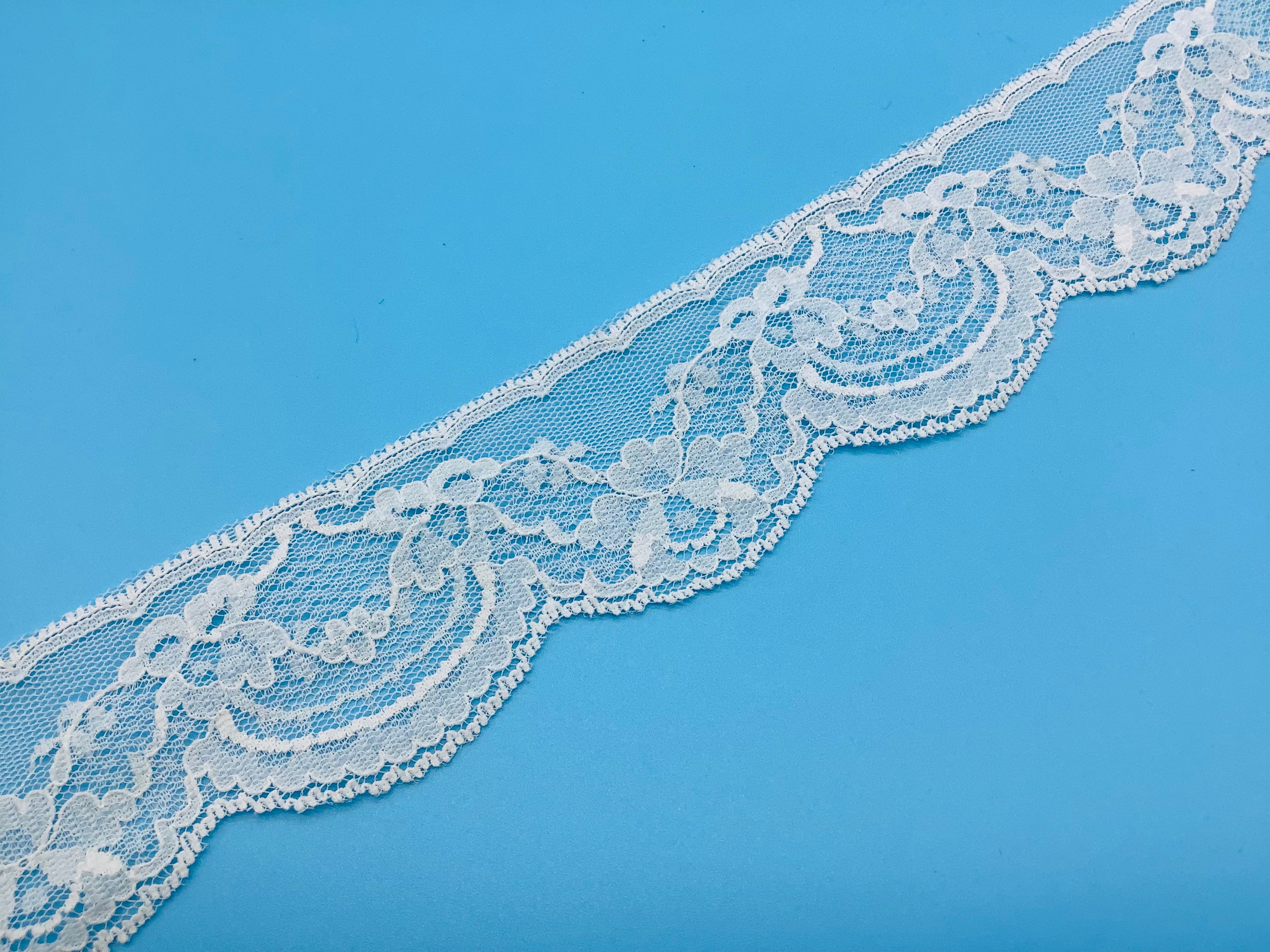 Ivory 5-1/2" Leavers Chantilly Style Galloon Lace with Eyelash Edges - 3 Yards