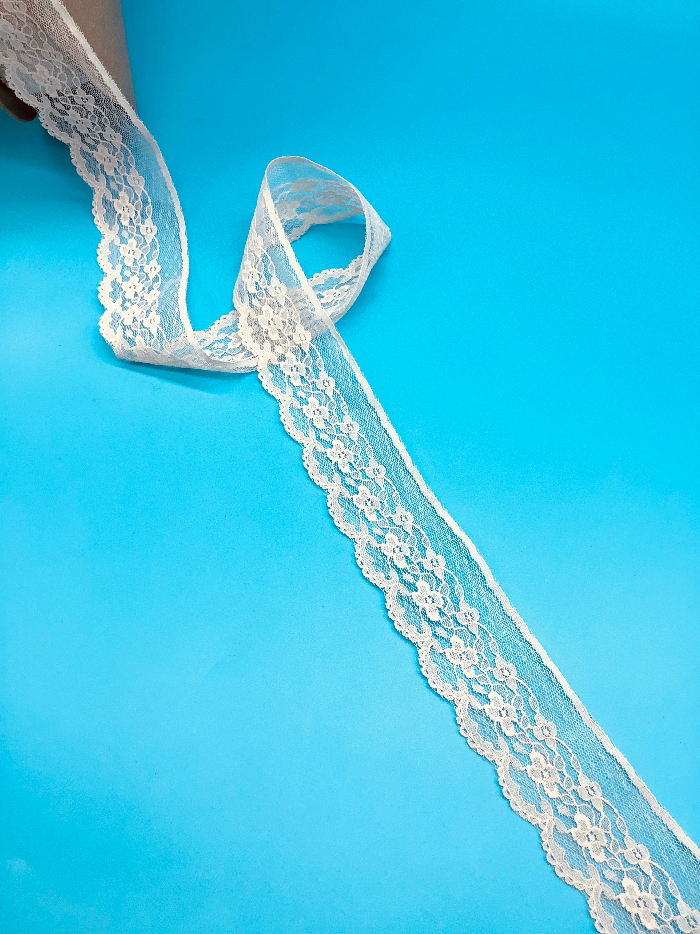 White 3/4" Stretch Lace Galloon - 12 Yards