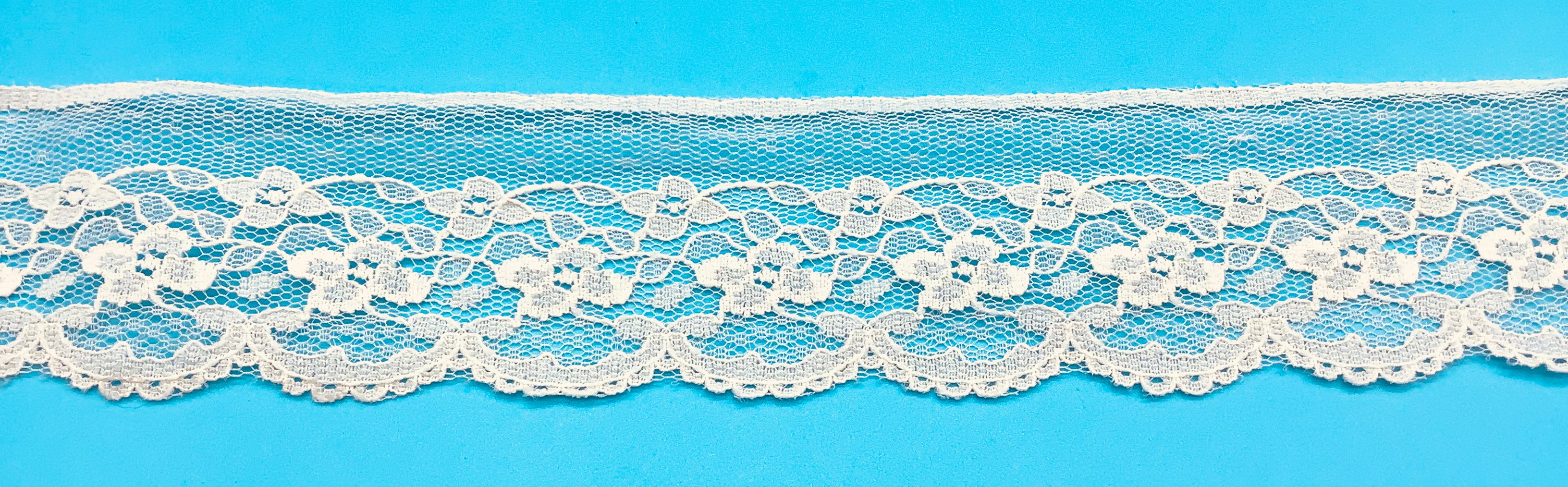 Natural 1-3/4" Dainty Floral Edge with Point D'esprit Netting - 12 Yards