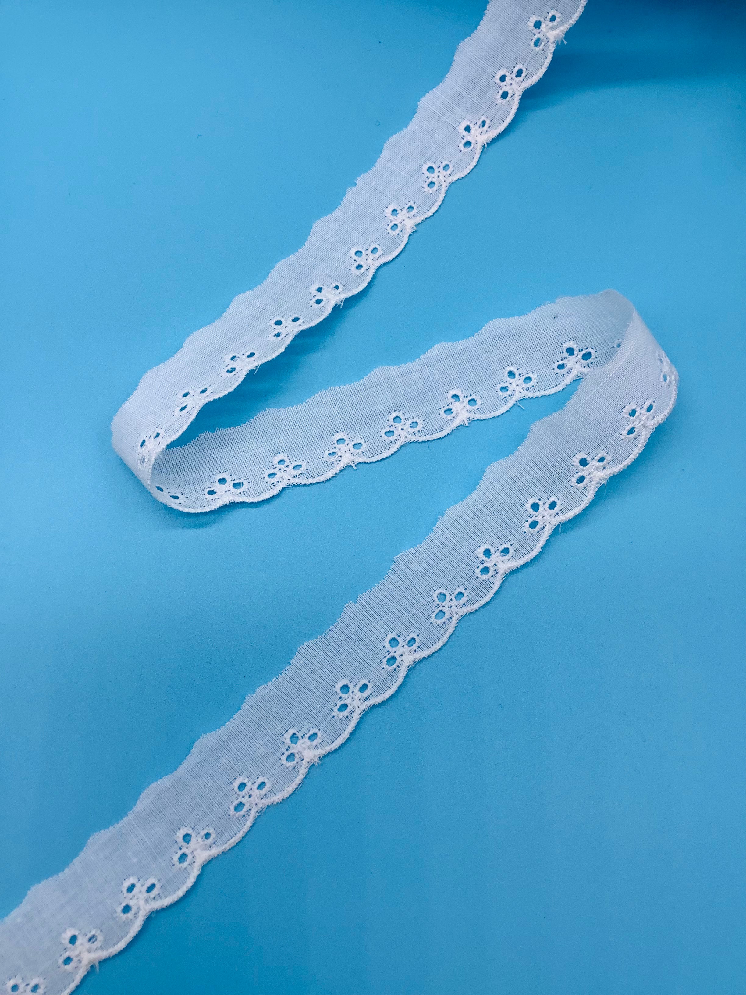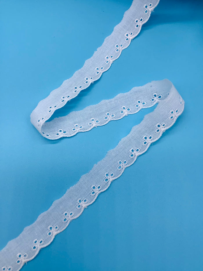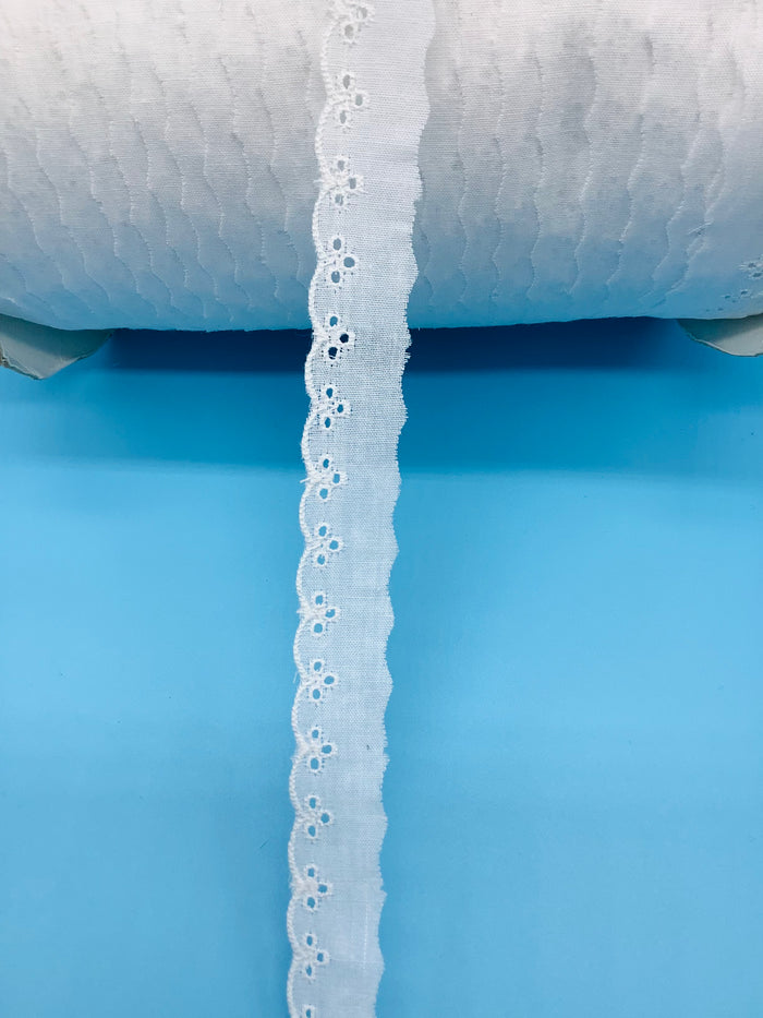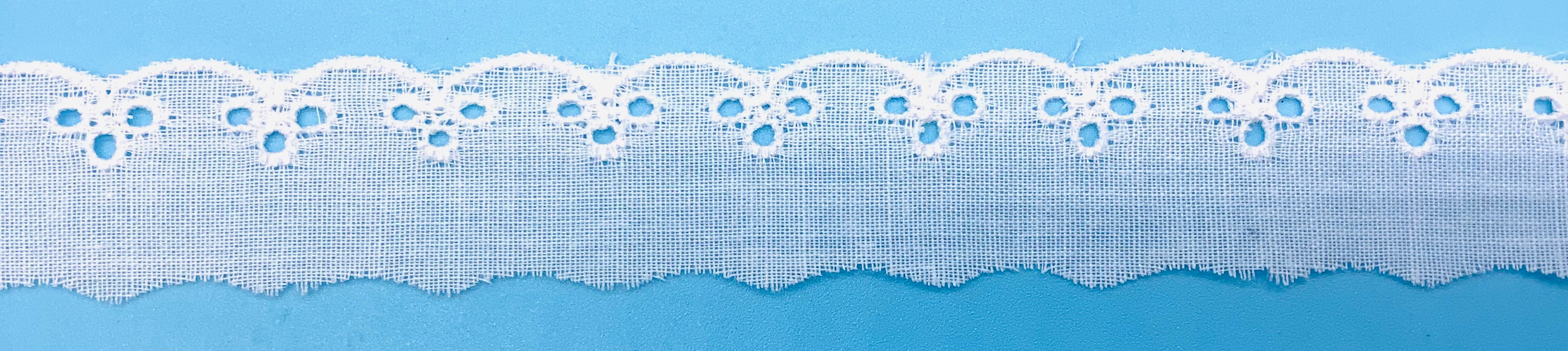 White 3/4" Teardrop Mini Eyelet Edge - 12 Yards