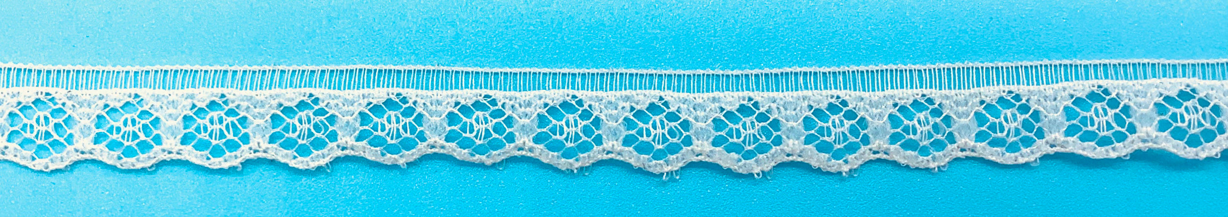 White 3/8" Baby Lace Edge with Small Clustered Knots Forming & Scalloped Edge - 18 Yards