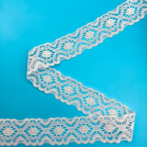 White 3-1/4" Rose Lace Galloon - 8 Yards