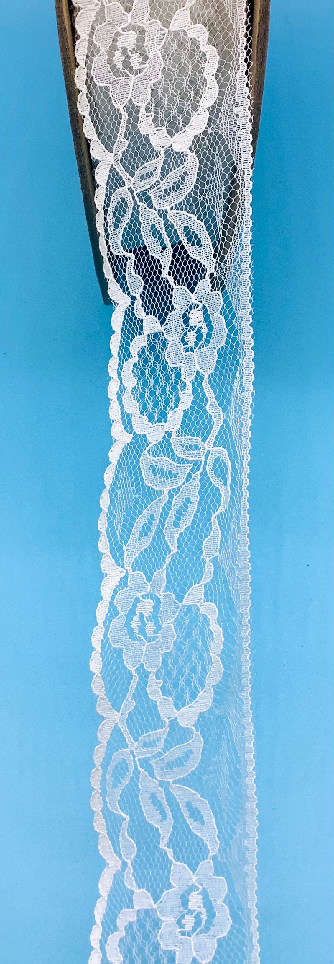 Ivory 5-1/2" Leavers Chantilly Style Galloon Lace with Eyelash Edges - 3 Yards