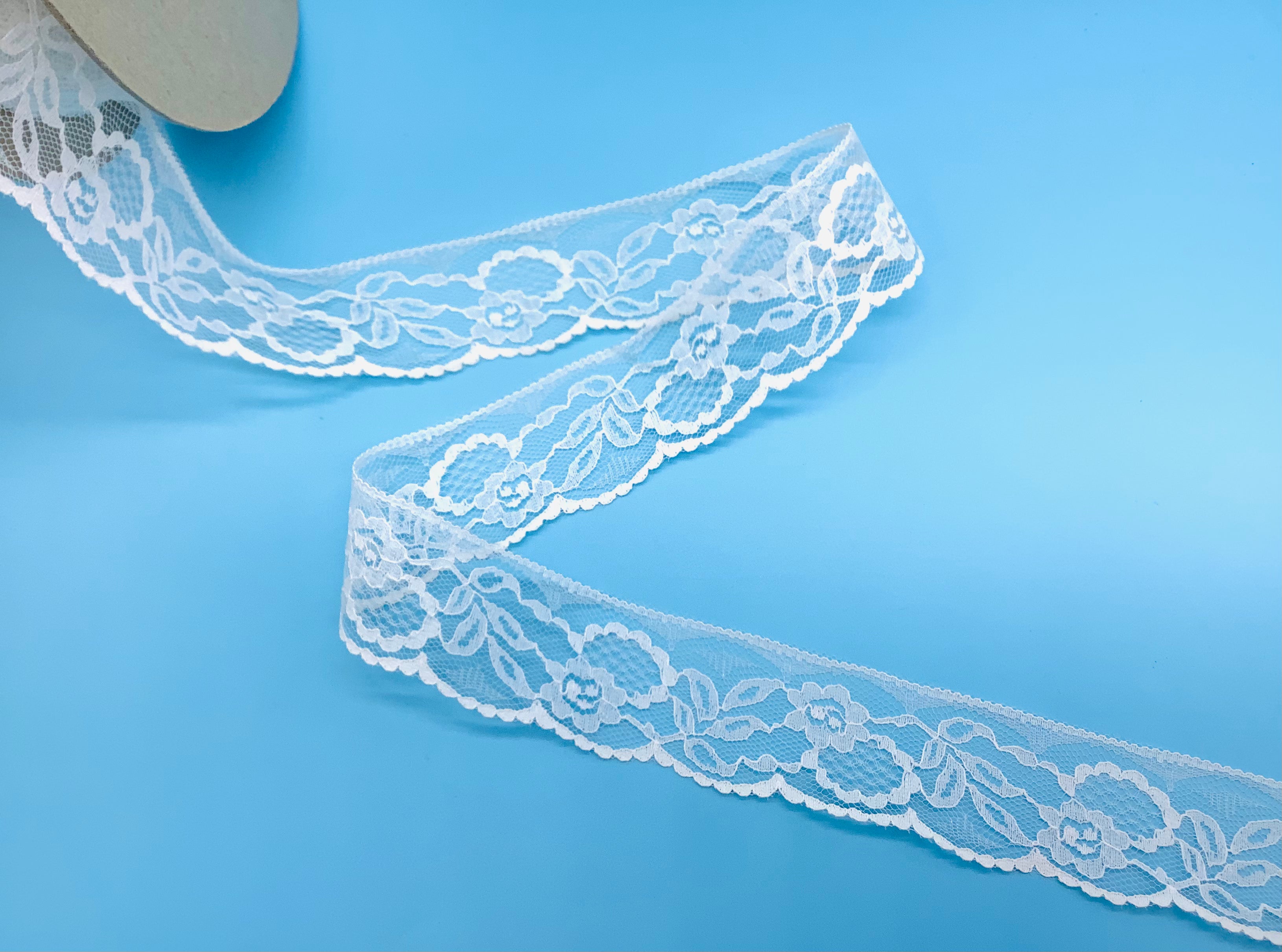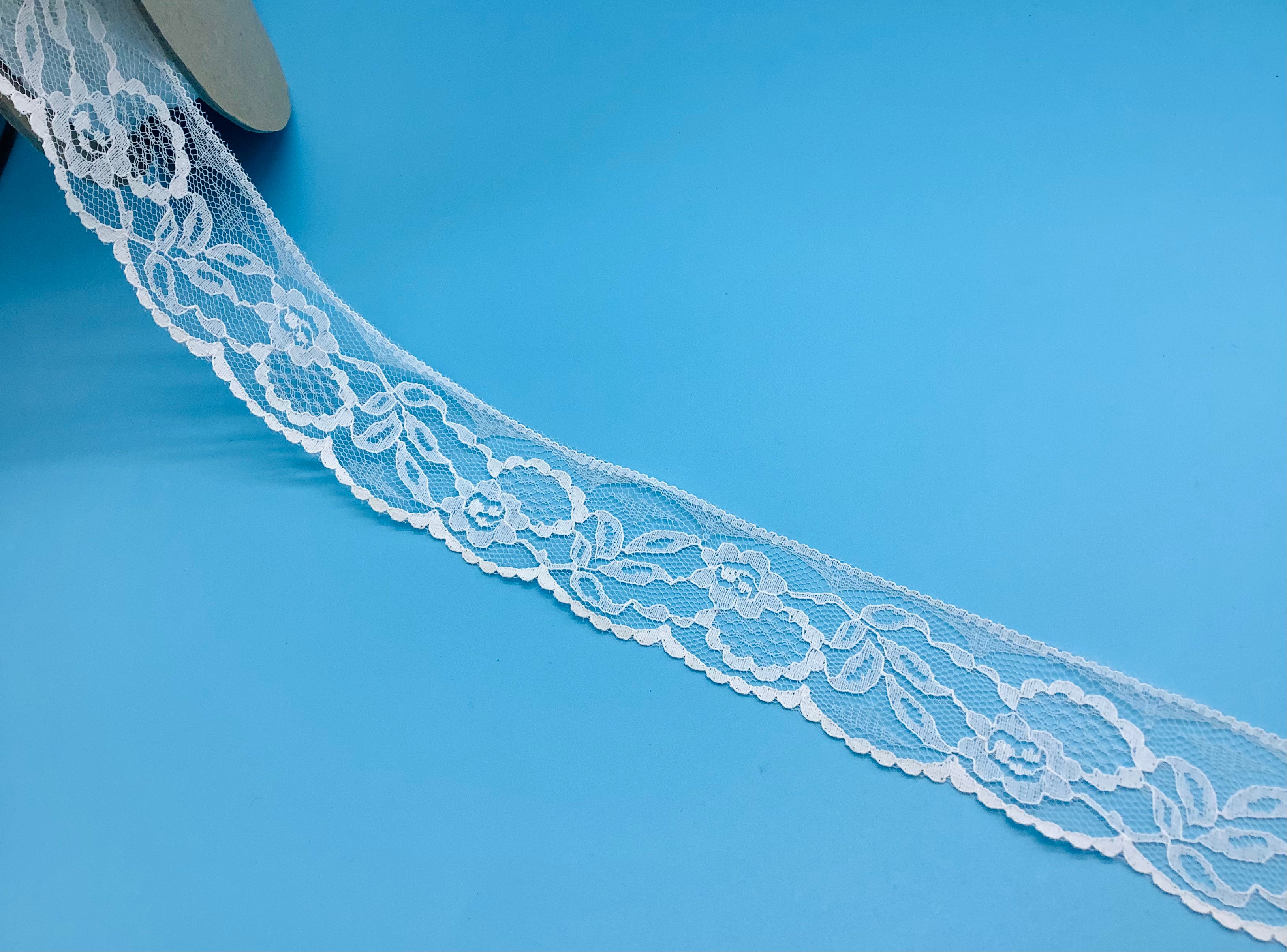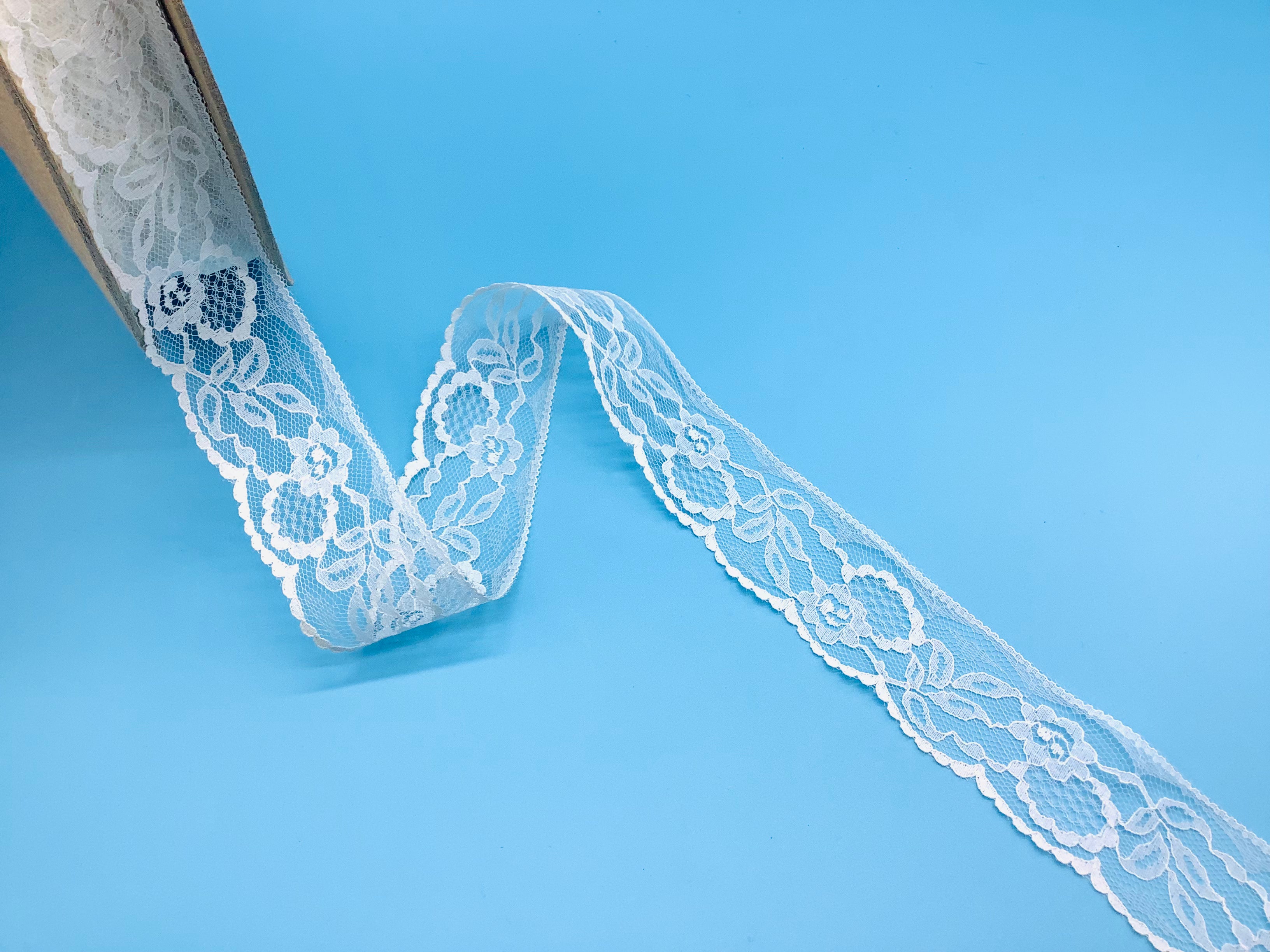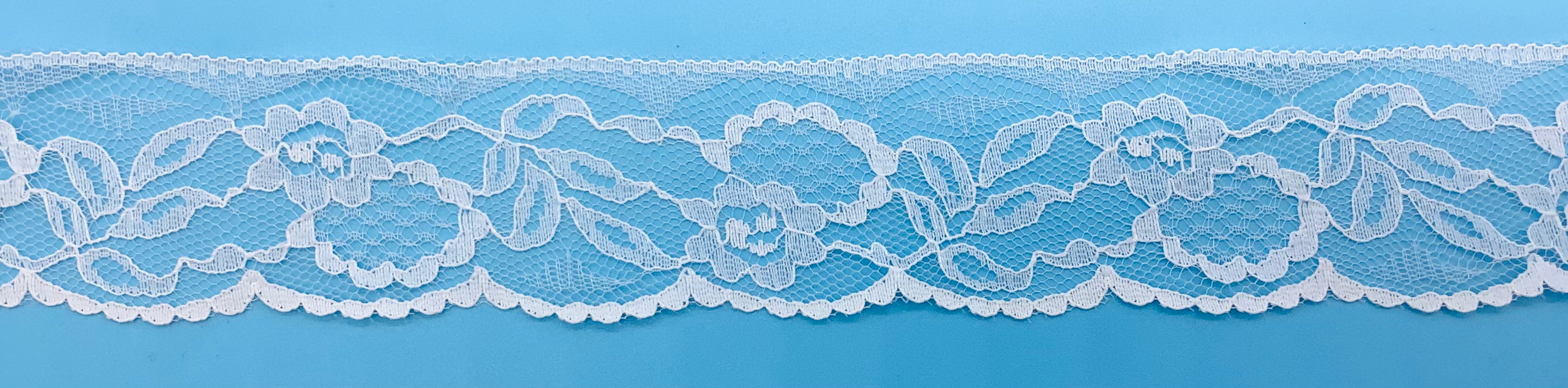 White 1-1/2" Lace Edge with Flowers & Leaves - 12 Yards