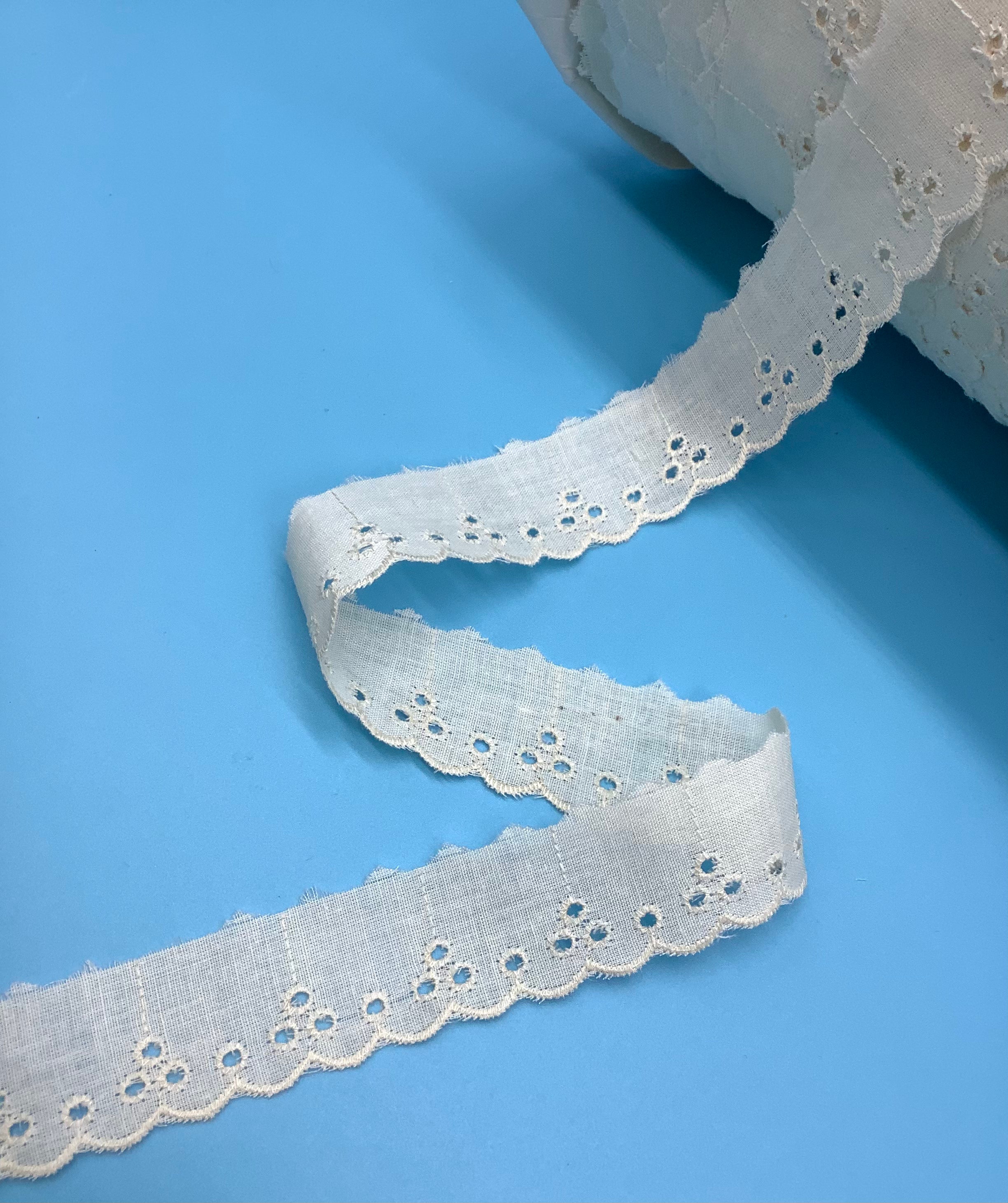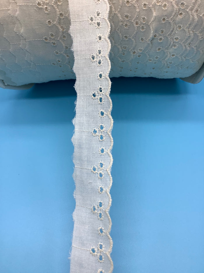 Ivory 1-1/8" Basic Eyelet Edge - 12 Yards