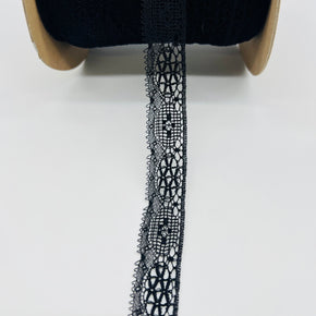 Black 1-1/4" Floral Lace Edge - 12 Yards