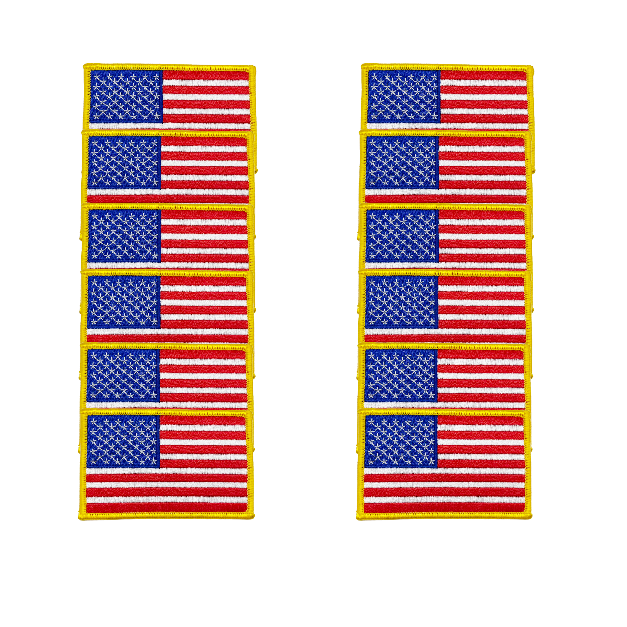 Show your patriotic spirit with this 12-pack of American Flag Embroidered Appliques. Each patch measures 2-1/4" x 3-1/2" (5.7 cm x 8.9 cm) and features detailed embroidery with vibrant red, white, and blue stitching. These appliques can be iron-on, sewn on, or glued, making them perfect for clothing, backpacks, hats, uniforms, jackets, DIY craft projects, and event decorations. Whether you're decorating for the 4th of July, honoring veterans, creating handmade gifts, or customizing apparel, these durable patches deliver a clean, professional look that lasts.