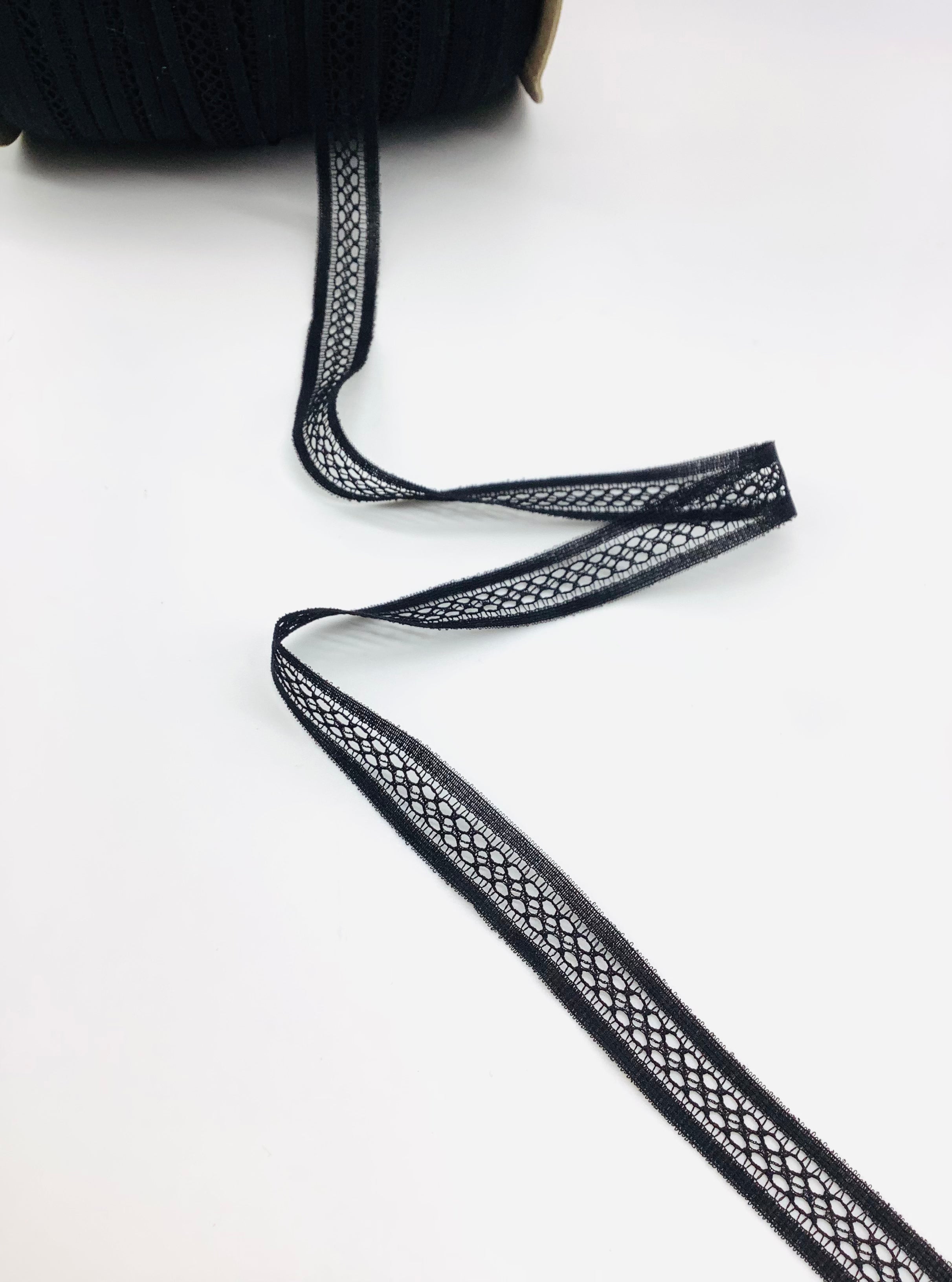 Black 3/4" Lace Ribbon Insert - 15 Yards