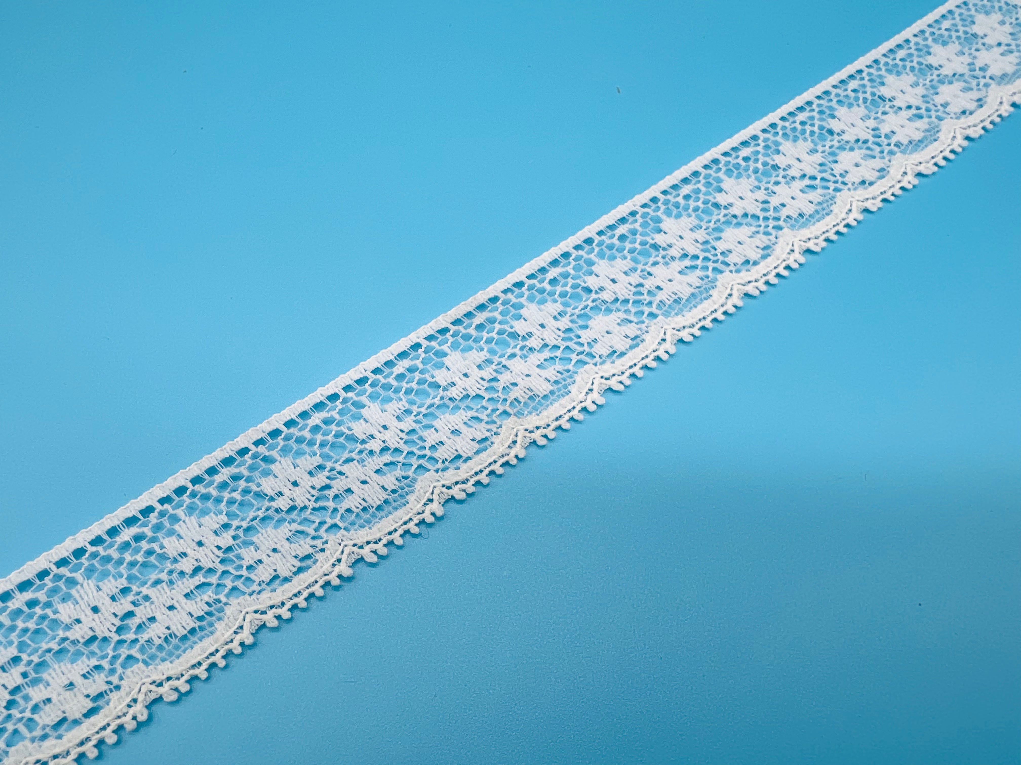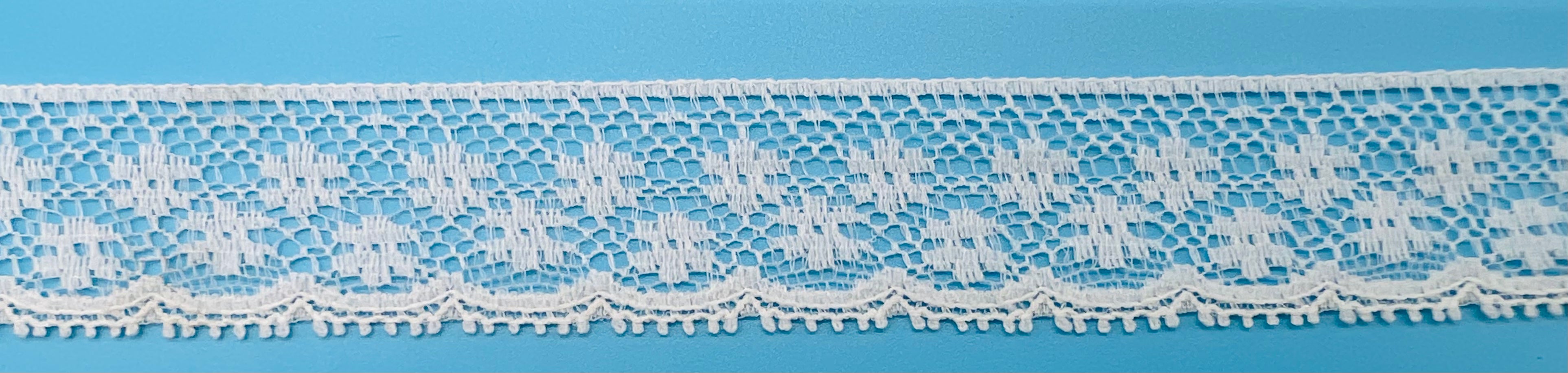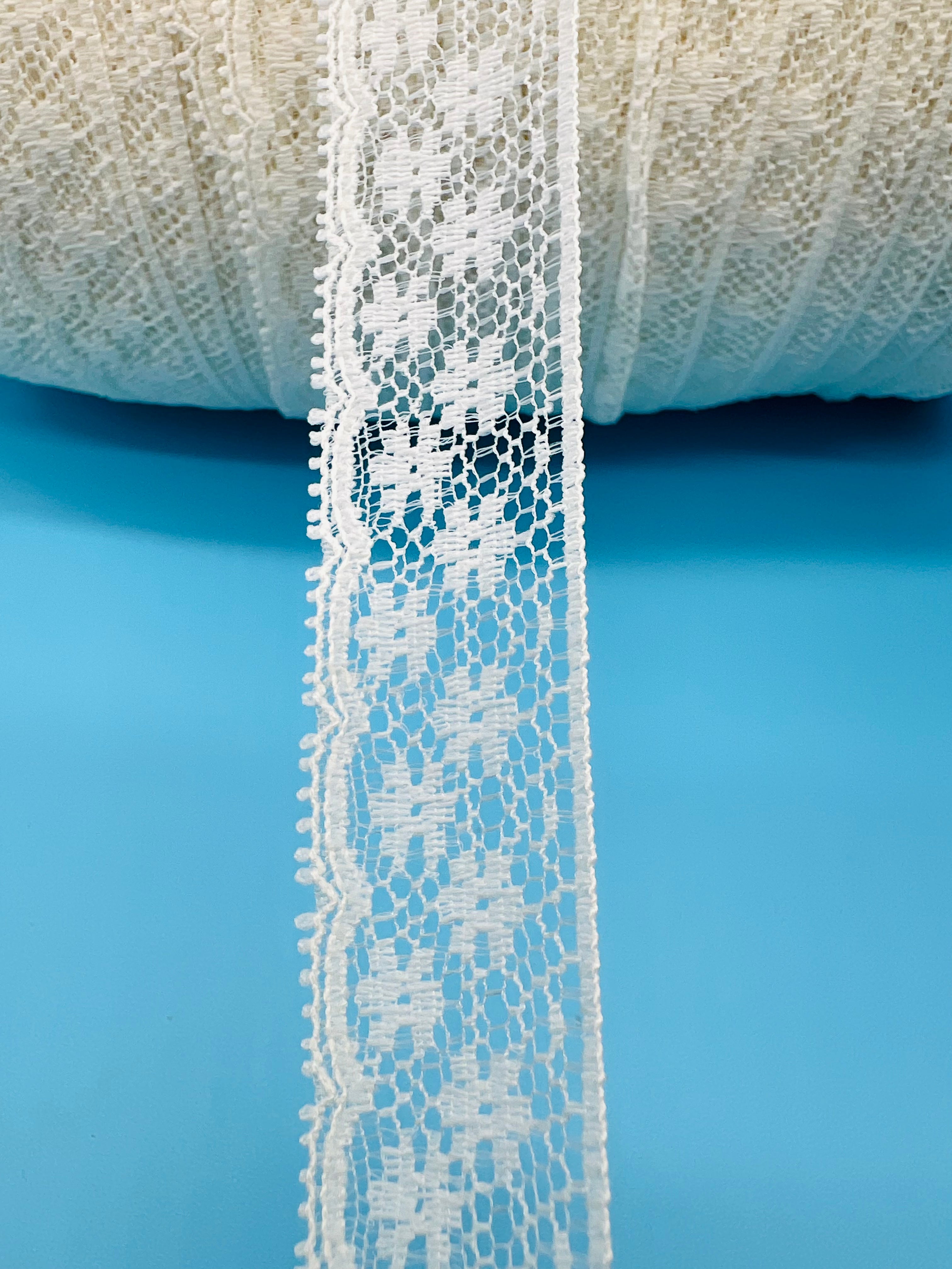 Style #: KB947-8Price Per Spool: $14.97Package Contains 15 Yards 100% Polyester Lace has a beautiful Pico Scallop