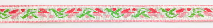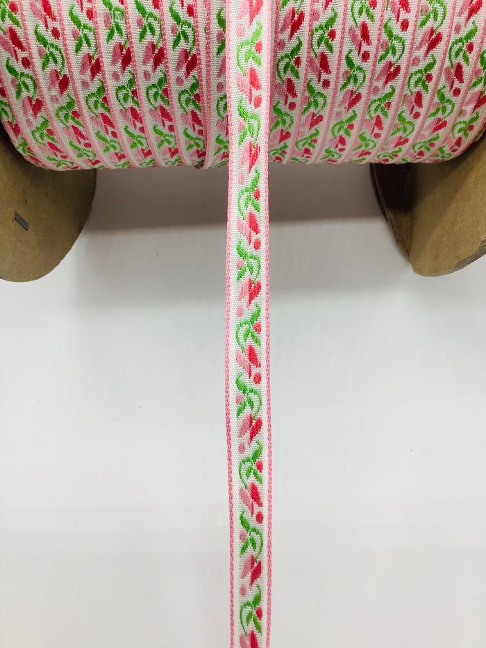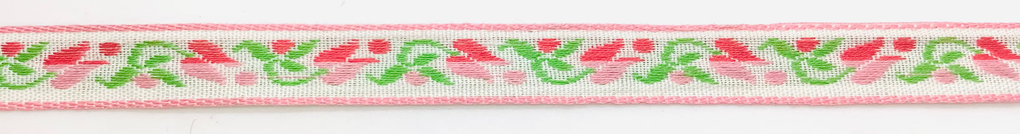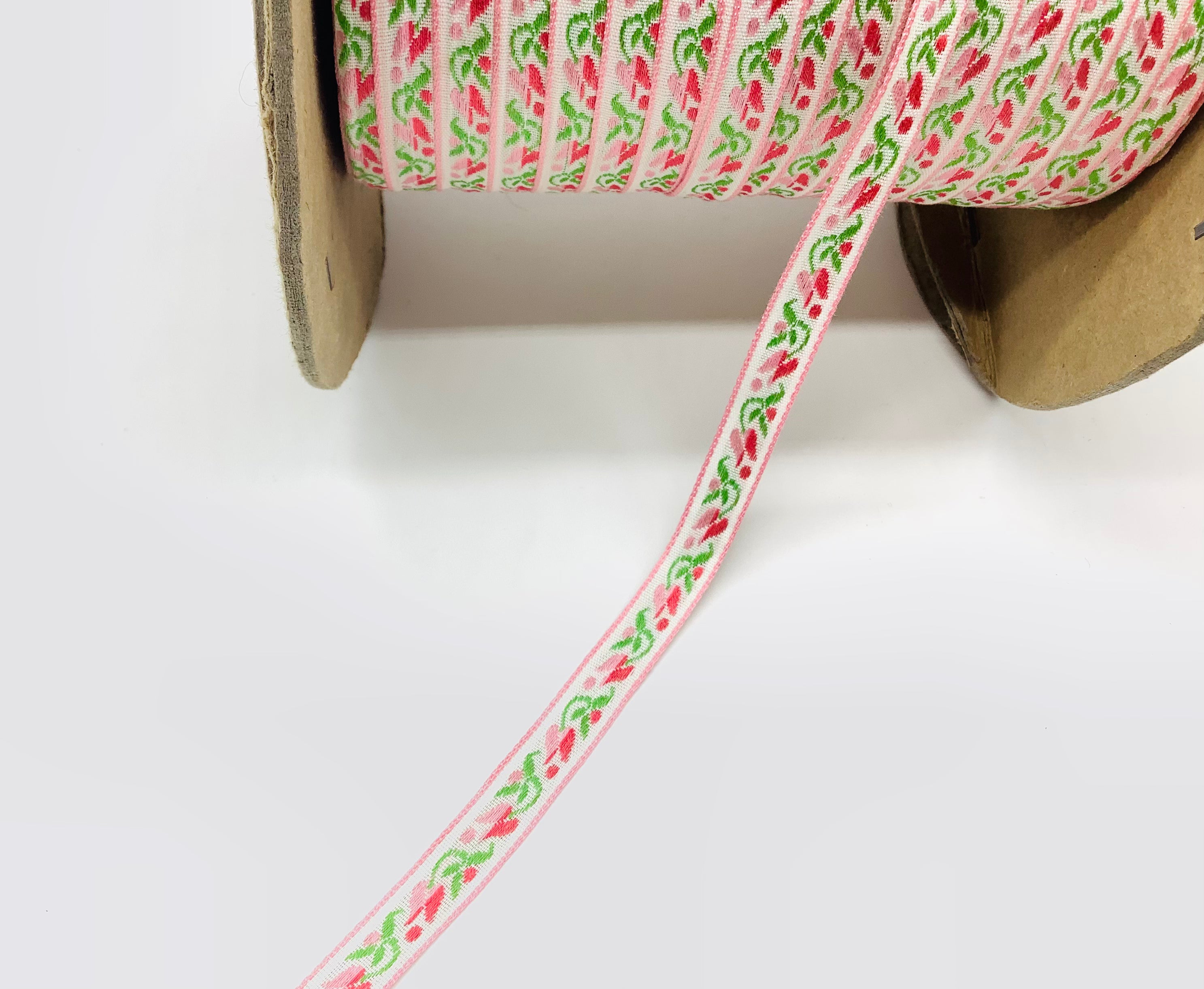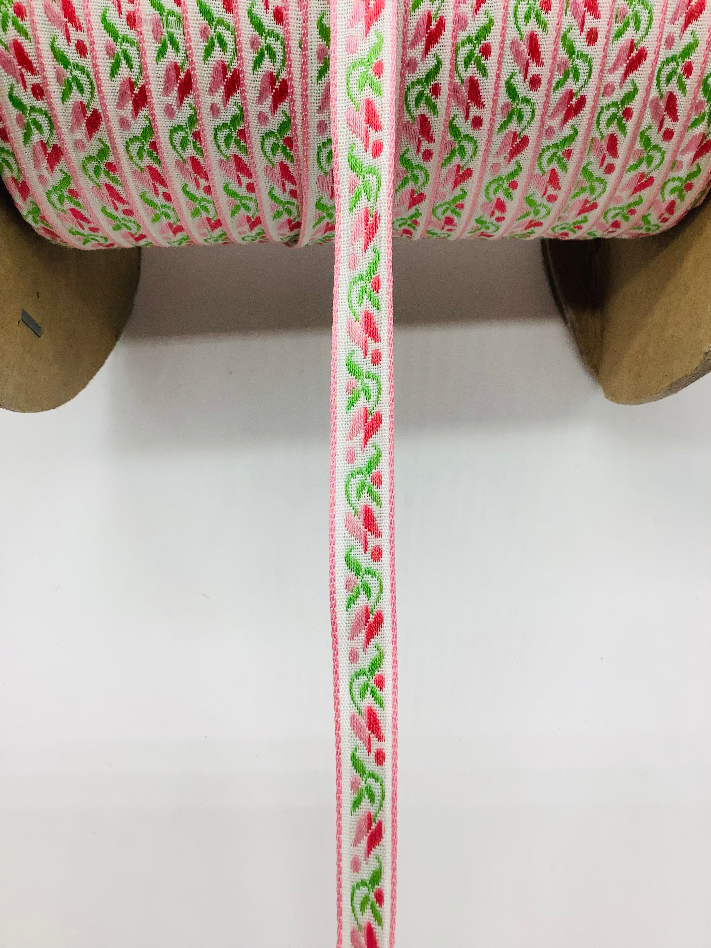 Pink, Coral & Lime on White Background 7/16" Vintage Woven Tulip Jacquard - 12 Yards
