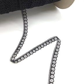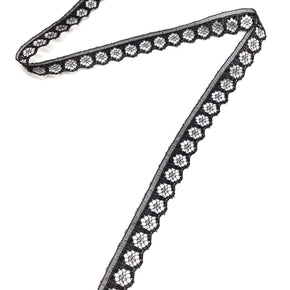 Style #: KB2825-1Price Per Spool: $18.97Package Contains 8 Yards Floral Lace GalloonThe Flowers are bold & outlined with a denser Cord 100% Polyester Great for Bridal, Costumes & Millinery