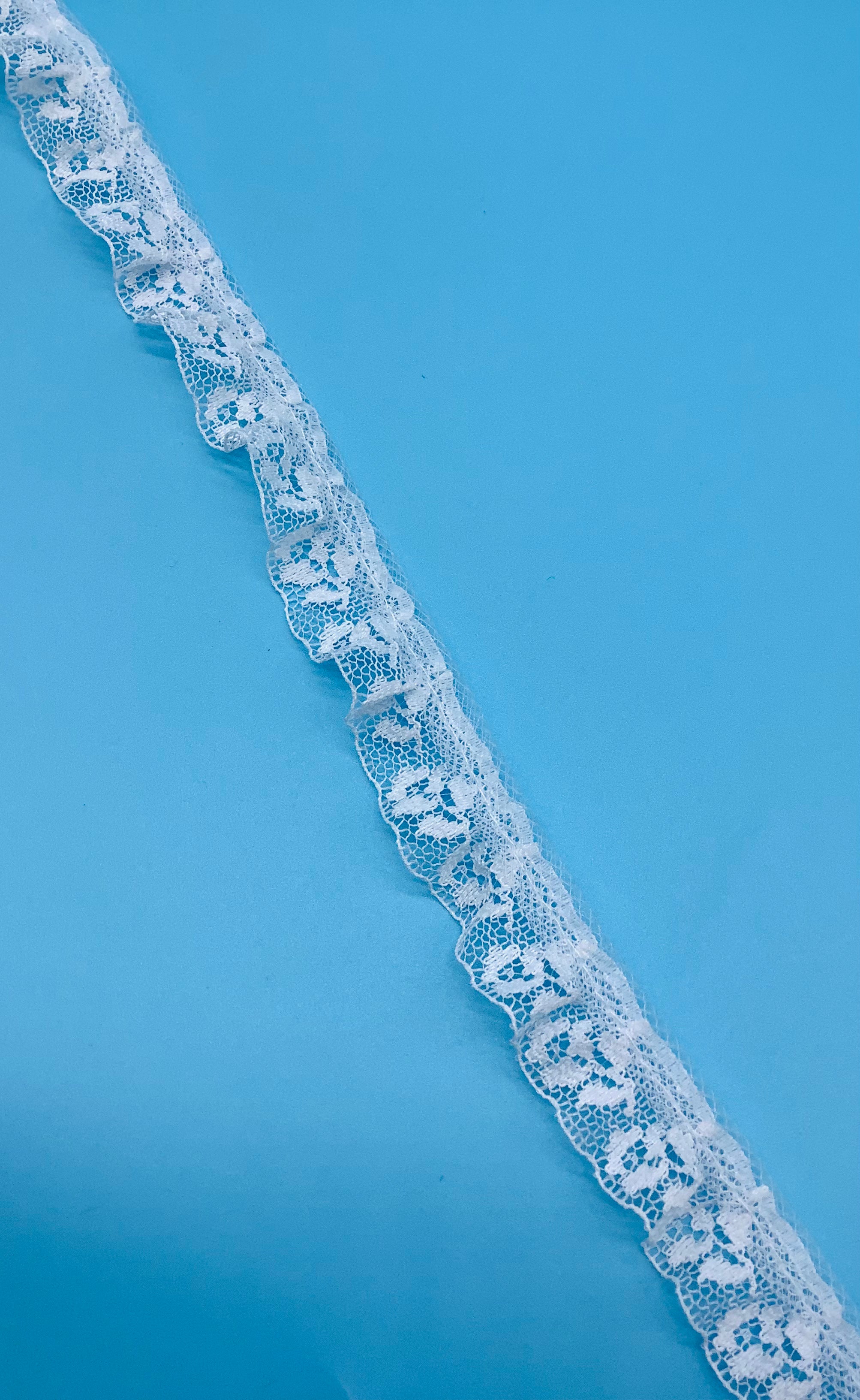WHITE 3/4 INCH RUFFLED FLORADELLE LACE