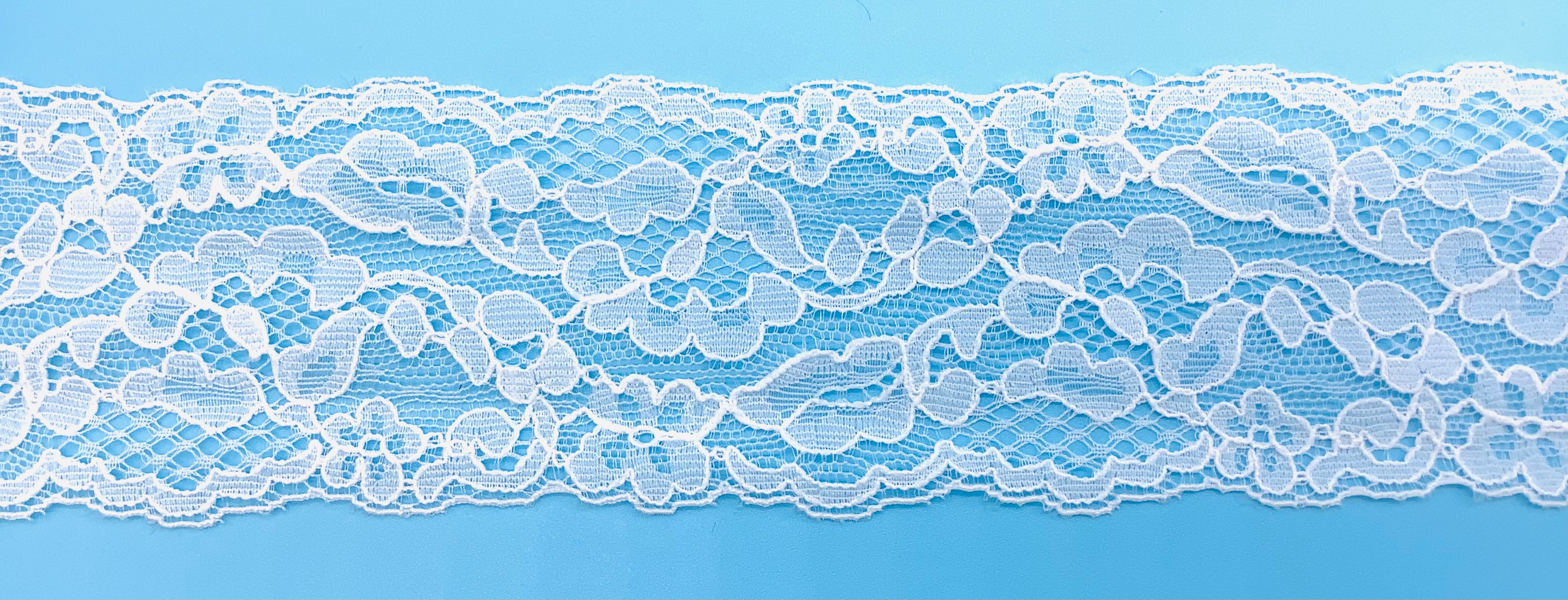 Style #: KB3855-1Price Per Spool: $15.97Package Contains 10 Yards Great for Bridal Veils & Wedding Accessories This is an Elegant, Feminine & Classic Lace 100% Polyester Soft, Warm & Rich Off White Shade